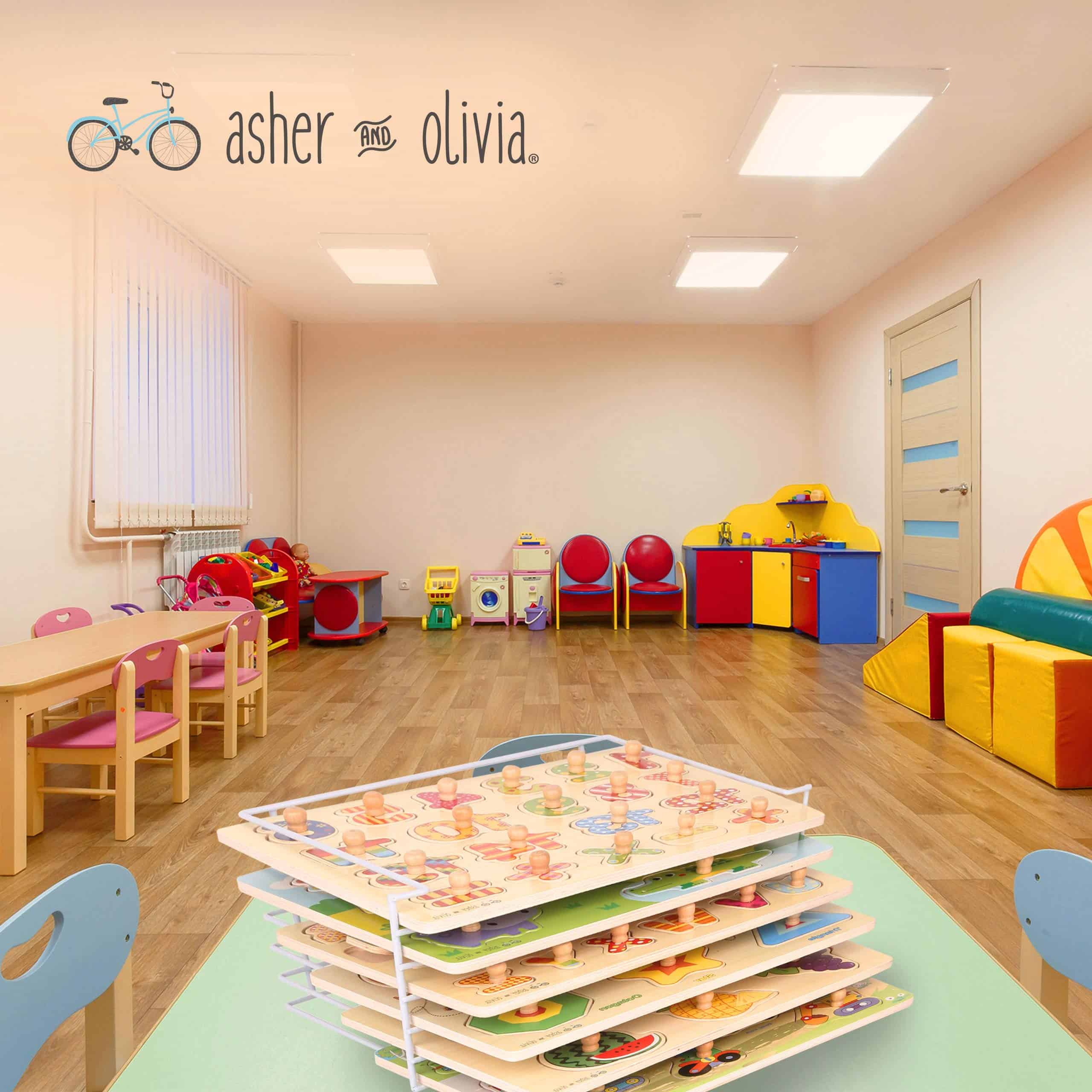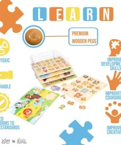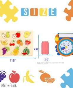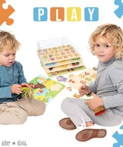 4. PIEZAS FÁCILES DE AGARRAR: Las piezas de rompecabezas para niños en cada tablero están diseñadas estratégicamente con el tamaño perfecto para ser agarradas fácilmente por bebés y niños pequeños, mejorando sus habilidades mano-ojo, motoras finas y para resolver problemas; El set de rompecabezas de madera de Asher y Olivia enseña los fundamentos que todo niño necesita mientras el soporte de almacenamiento de rompecabezas para niños permite a los niños guardar sus juguetes por sí mismos aprendiendo la importancia de limpiar.