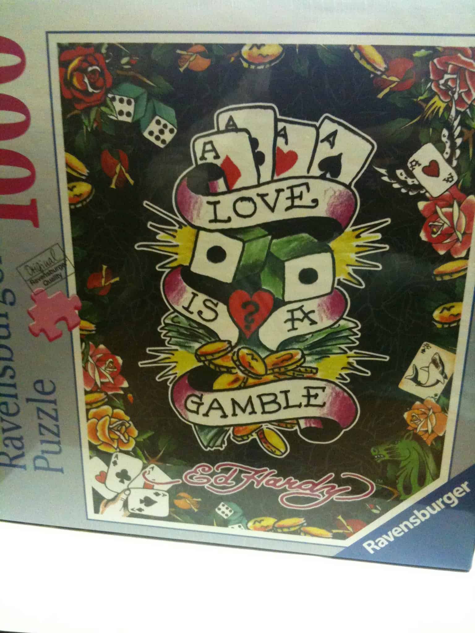 Rompecabezas de rompecabezas Ed Hardy de 1000 piezas, con una imagen de ‘El Amor es un Juego’. Este rompecabezas de 27 x 20 pulgadas es perfecto para horas de diversión y entretenimiento.