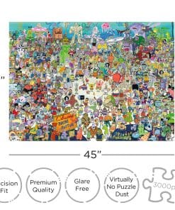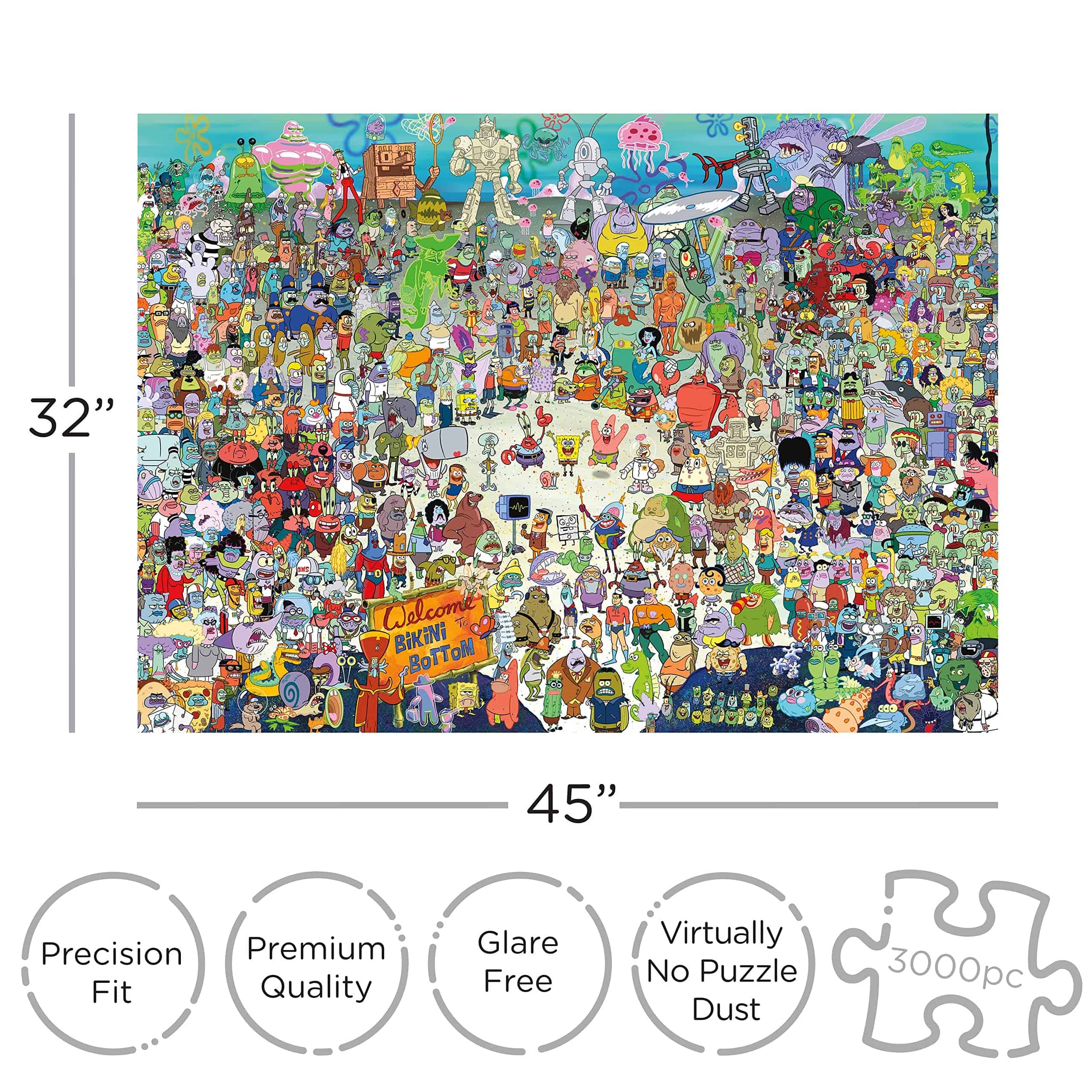 Rompecabezas de 3000 piezas: Sumérgete en Fondo de Bikini con este colorido rompecabezas de 3000 piezas donde cada ciudadano está presente y contabilizado. ¿Puedes encontrar tu personaje favorito? El rompecabezas completado mide 32 x 45 pulgadas. ¿Buscas regalos de Bob Esponja? Este rompecabezas de Bob Esponja es el regalo definitivo para los fanáticos de todas las edades. Perfecto para armar en familia, noches de juegos, fiestas y cumpleaños, ¡tanto niños como adultos lo amarán! Calidad premium en la que puedes confiar: Nuestra técnica de corte de precisión garantiza un ajuste perfecto de todas las piezas del rompecabezas, no dejando prácticamente ningún residuo de polvo de rompecabezas. Utilizamos papel de alta calidad y sin reflejos para que puedas presumir tu obra maestra con orgullo. Productos oficiales al 100% de Bob Esponja: Todos nuestros rompecabezas de Bob Esponja están diseñados por AQUARIUS y son oficialmente de Nickelodeon. Son la pieza perfecta de coleccionable de Bob Esponja para agregar a tu colección. La promesa de AQUARIUS: Es simple. Respaldamos nuestros productos al 100% y si no estás completamente satisfecho con tu compra, ¡te ofreceremos un reembolso completo! ¡Haz clic en el botón amarillo «Agregar al carrito» hoy y compra con confianza. Los juegos, rompecabezas y cartas de juego de AQUARIUS son tanto un reflejo de los favoritos de hoy como un guiño al pasado, diseñados para entretener a jóvenes y mayores por igual.