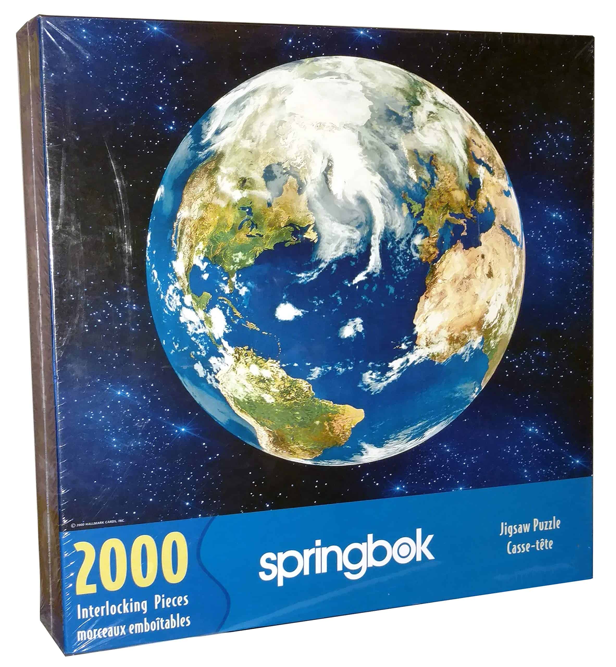 2000 Piece Springbok Blue Planet Jigsaw Puzzle. This puzzle gives a beautiful view of the Earth in space. Tons of fun to put together over and over again, or to frame and hang on your wall!