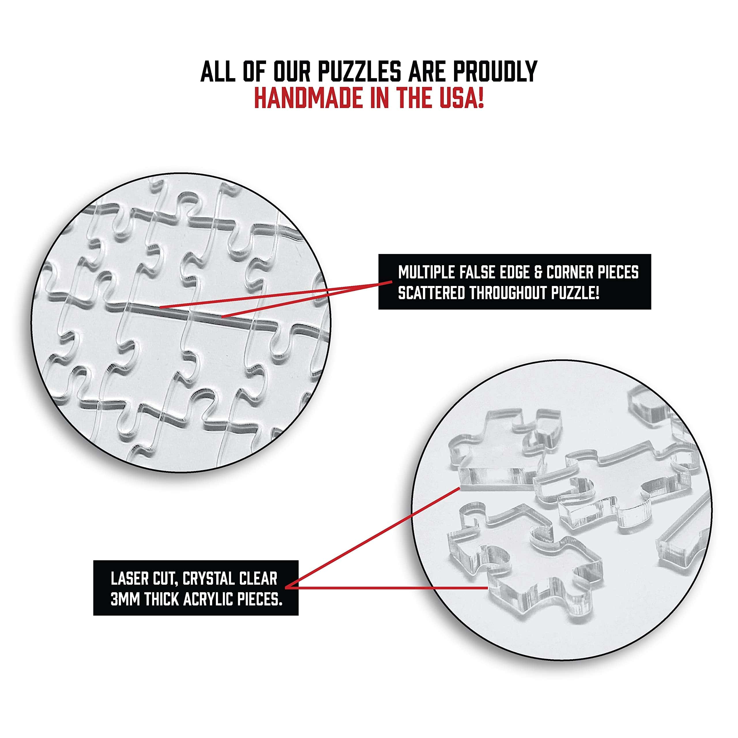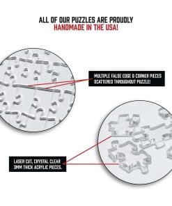 Rompecabezas The Clearly Impossible: 1000 piezas, 500 piezas, 200 piezas o 100 piezas. Rompecabezas único y uno de los más difíciles que jamás resolverás (si puedes). Ofrecemos varias variantes de piezas que son adecuadas para cualquier tipo de amante de los puzzles. Cuanto más grande sea el rompecabezas, más complicado será. Numerosas piezas falsas en los bordes y esquinas son un desafío adicional. Cada parte es completamente diferente, ninguna parte es igual. Nos complace ofrecerte un rompecabezas único y complejo hecho en Estados Unidos. Ideal para una noche de juegos en familia. ¡Ordene varios a la vez para competir con familiares y amigos! Demuestra que eres el maestro de los puzzles. El regalo perfecto para los amantes de los puzzles. También puedes regalarlo intencionalmente para volver loco a alguien.