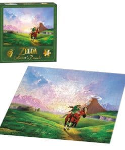 Conviértete en un Héroe del Tiempo y arma esta vista épica de Link cabalgando por Hyrule. Este es solo uno de los rompecabezas bellamente elaborados de 550 piezas en la Colección de Puzzles The Legend of Zelda de USAopoly. ¡Colecciónalos todos!