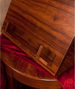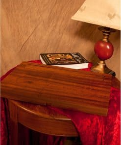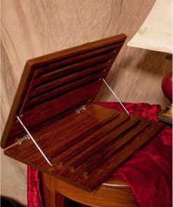 Soporte de música de mesa de palisandro, esta bandeja con bisagra se colapsa plana en la base para viajar o almacenamiento. Esta es una opción hermosa y útil para músicos con espacio limitado. Dimensiones cerradas aproximadas: 17 pulgadas de largo por 12 pulgadas de profundidad por 1 A pulgadas de alto. Bandeja de música: 14 1/4 pulgadas de largo por 10 pulgadas de alto por 1.25 pulgadas de profundidad, que tiene brazos abatibles para sostener papeles o libros. La bandeja tiene 4 niveles que es un ajuste de inclinación o ángulo. Las dimensiones aproximadas abiertas varían desde: 17 pulgadas de largo por 12.5 pulgadas de profundidad por 12 pulgadas de alto y el ángulo más bajo que se abre a 7.5 pulgadas de profundidad. El soporte pesa 6.25 libras.