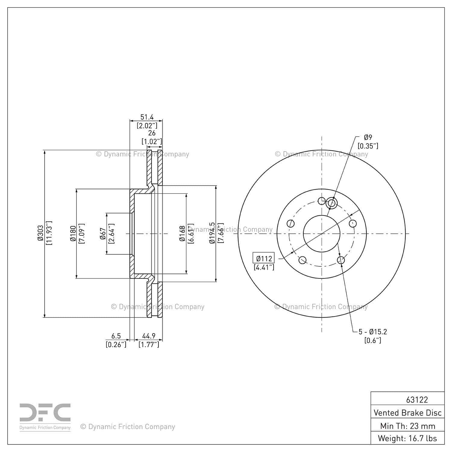 Rotor de Freno Delantero Recubierto GEOSPEC de Dynamic Friction Company 604-63122 (1)