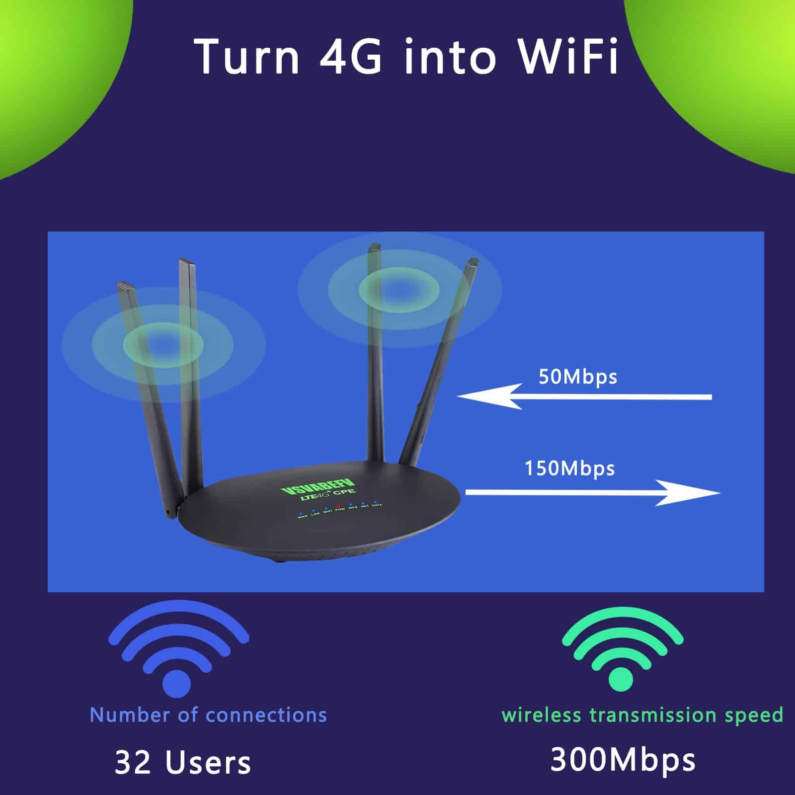 Router 4G LTE VSVABEFV con Ranura de Tarjeta SIM 300Mbps