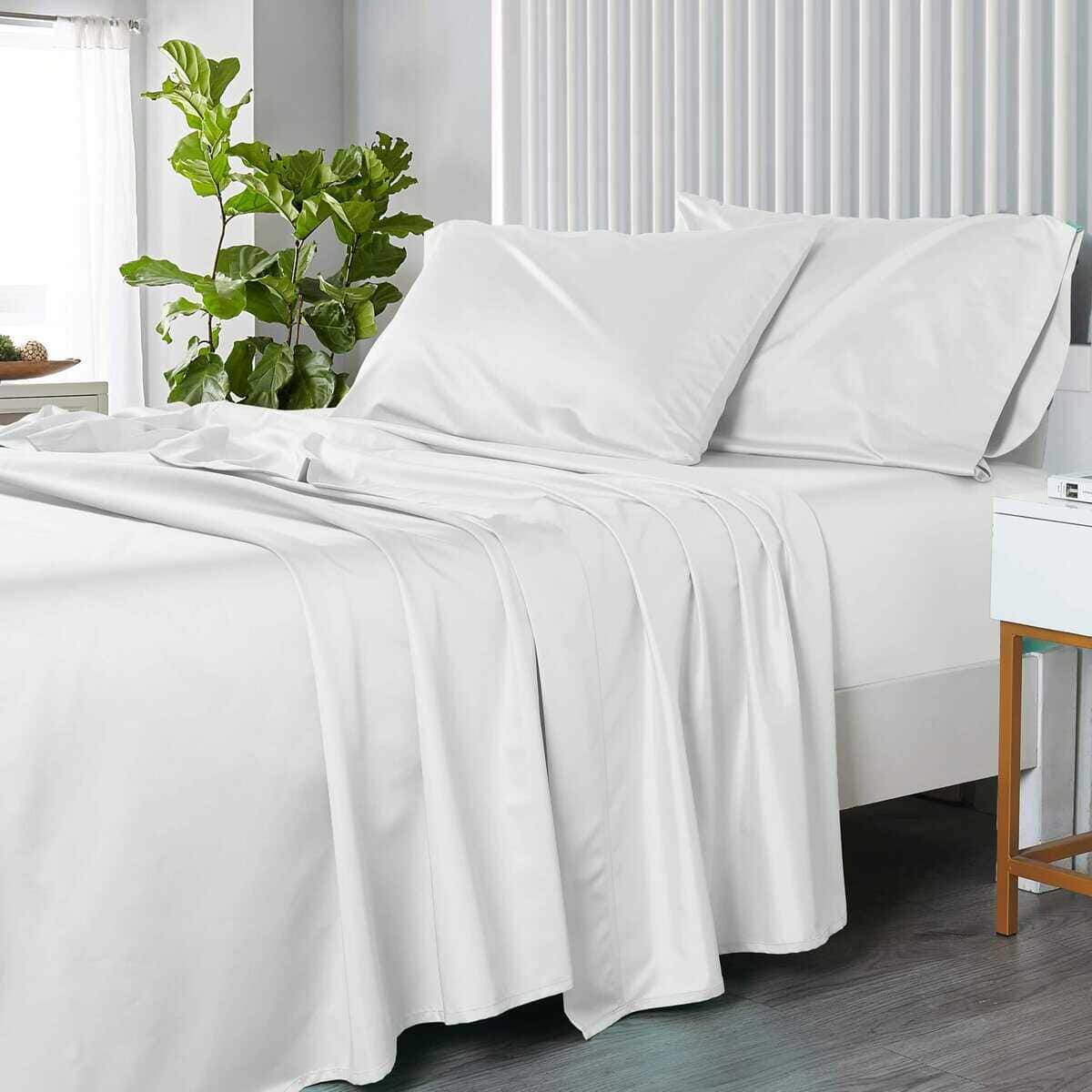 Incluye Juego de Sábanas Top Split California King: 1 Sábana Plana (110″ x 102″), 1 Sábana Ajustable Flex-Cabecera (72″ x 84″) y 2 Fundas de Almohada King (20″ x 40″) cada una. Por favor, ten en cuenta que estas sábanas se ajustan a colchones de hasta 18 pulgadas de profundidad y proporcionan elástico en todo el contorno de la sábana ajustable. Material: 100% Algodón Peinado de Fibra Larga de 600 Hilos. Una textura irresistiblemente suave a un costo asequible para todos. Sábanas suaves y lisas que durarán años. Sábanas de Algodón hipoalergénicas y transpirables para dormir increíblemente bien. Larga durabilidad del tejido con instrucciones de cuidado simples: Lavar a máquina solo en agua fría en un ciclo delicado con un detergente suave. Sin lejía. Secar en secadora a baja temperatura. Retirar inmediatamente al final del ciclo y doblar de inmediato. Planchar con una plancha caliente si es necesario. Devoluciones y reembolsos sin complicaciones: Nuestra satisfacción del cliente es nuestra máxima prioridad. Todos los juegos de sábanas están encerrados en un embalaje claro y con cremallera que proporciona la etiqueta de producto completa y la descripción del artículo.