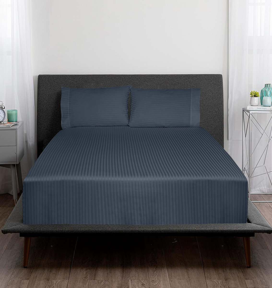 ROYALE LINENS Juego de Sábanas a Rayas de 300 hilo de algodón peinado. Este juego de sábanas de 300 hilos de algodón 100% incluye: 1 Sábana Plana de 90X102 Pulgadas, 1 Sábana Ajustable de 60X80 Pulgadas con 16 Pulgadas de Caída y 2 Fundas de Almohada de 20X30 Pulgadas con 4 Pulgadas de Dobladillo y Cierre Envolvente. Las sábanas de tamaño Queen de 300 hilos de Royale Linens son transpirables, frescas y super sedosas. La tela está procesada para hacerla resistente a la contracción y a la decoloración. Perfecto para dormitorio, habitación de invitados, habitación de niños, hoteles. Gran idea de regalo para hombres y mujeres en el Día de San Valentín, Día de la Madre, Día del Padre y Navidad. Nuestros juegos de sábanas de 300 hilos están certificados Standard 100 por Oeko Tex. Según las directrices, estos productos son probados para sustancias nocivas y producidos de manera amigable con el medio ambiente y socialmente responsable. También sostenible de acuerdo con las pautas de OEKO-TEX. Las sábanas de algodón de Royale Linens están diseñadas para aguantar lavados repetidos. Lavar a máquina en frío, solo blanqueador sin cloro, secar en secadora o planchar a temperatura normal. Lavar antes del primer uso para desbloquear la suavidad.