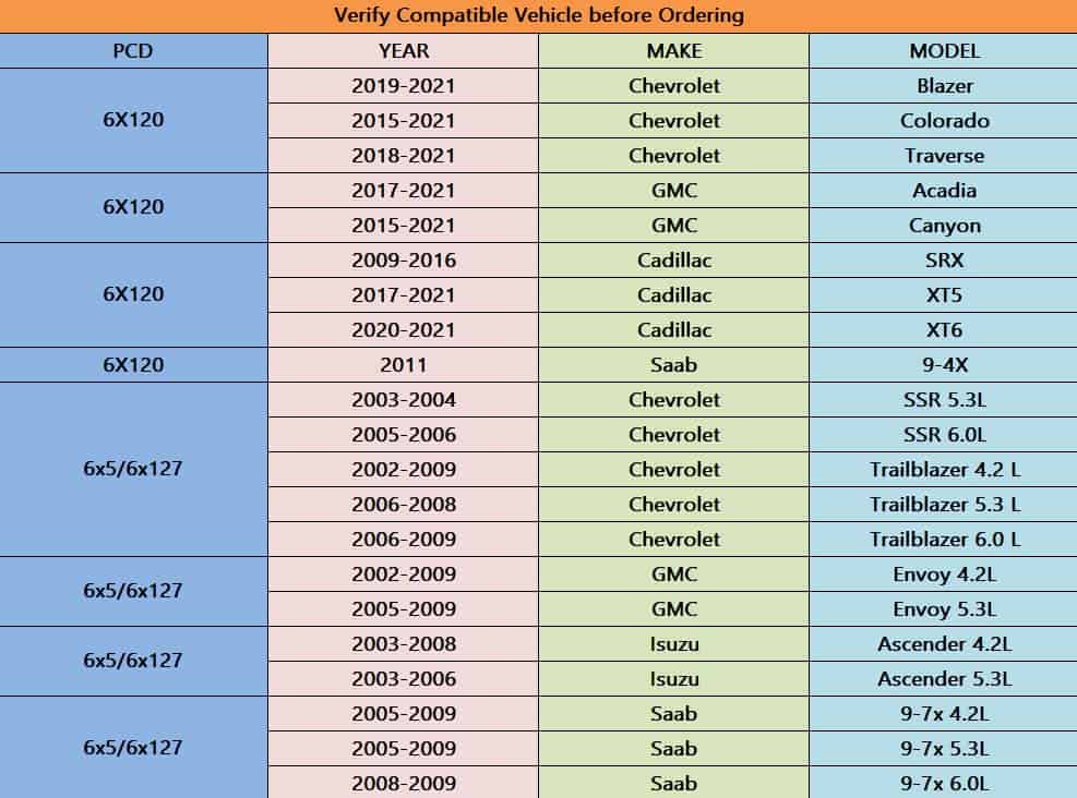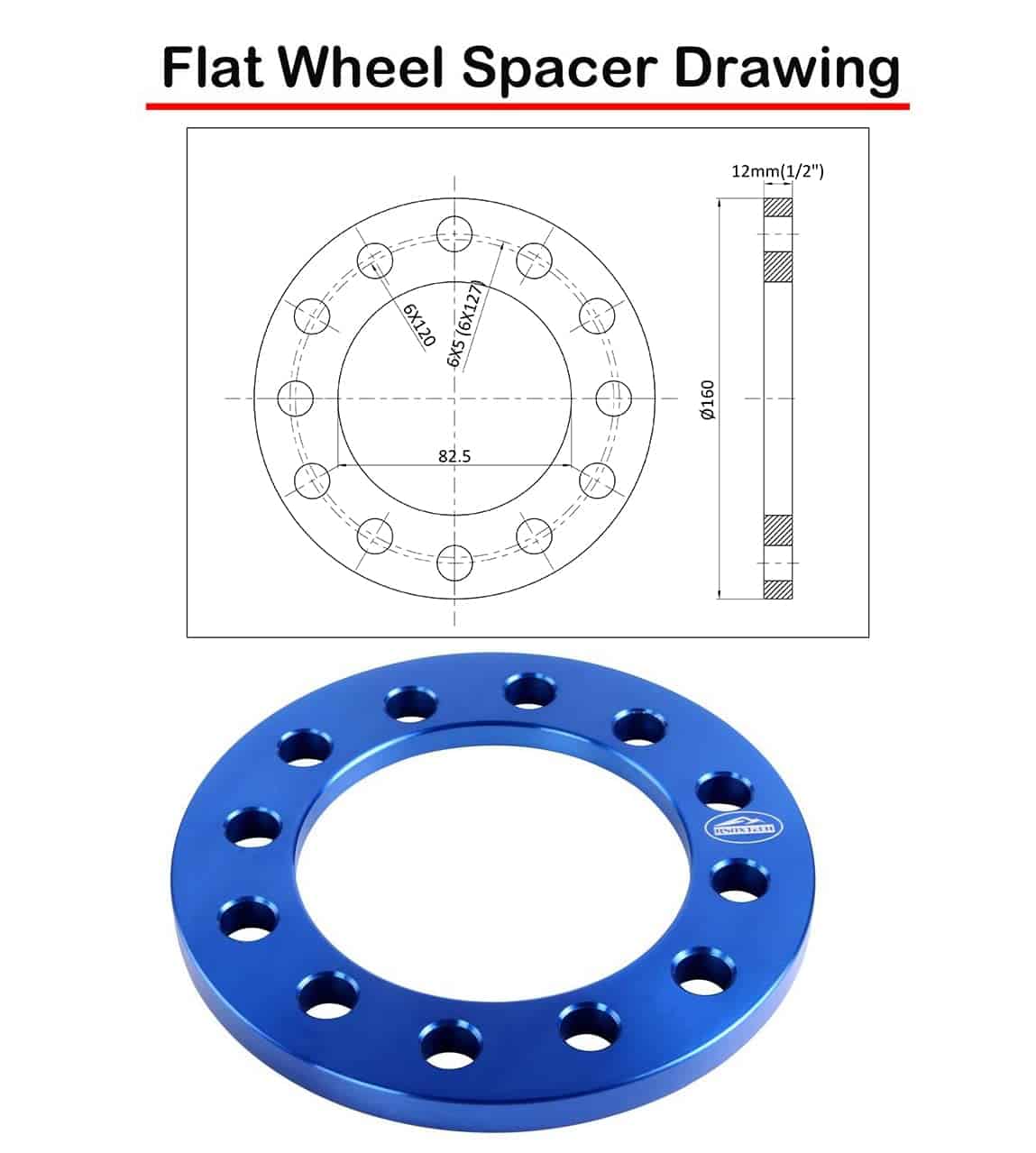 Especificación: Estos separadores NO SON ADAPTADORES, solo ensanchan las ruedas, no cambian el patrón de pernos. Paquete de 2 separadores de ruedas. Grosor: 1/2″ o 12mm | Patrón de pernos del vehículo: 6×5″ 6x120mm 6x127mm | Patrón de pernos de la rueda: 6×5″ 6x120mm 6x127mm | Agujero central: 82.5mm. Acabado anodizado azul.
