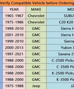 Consulte la Compatibilidad / Ajuste de vehículos recomendada a continuación, no se arriesgue con un vehículo inadecuado. Si no está seguro de si este artículo es adecuado para usted, envíenos un mensaje con el año, fabricante y modelo de su vehículo, encontraremos el artículo que necesita.
