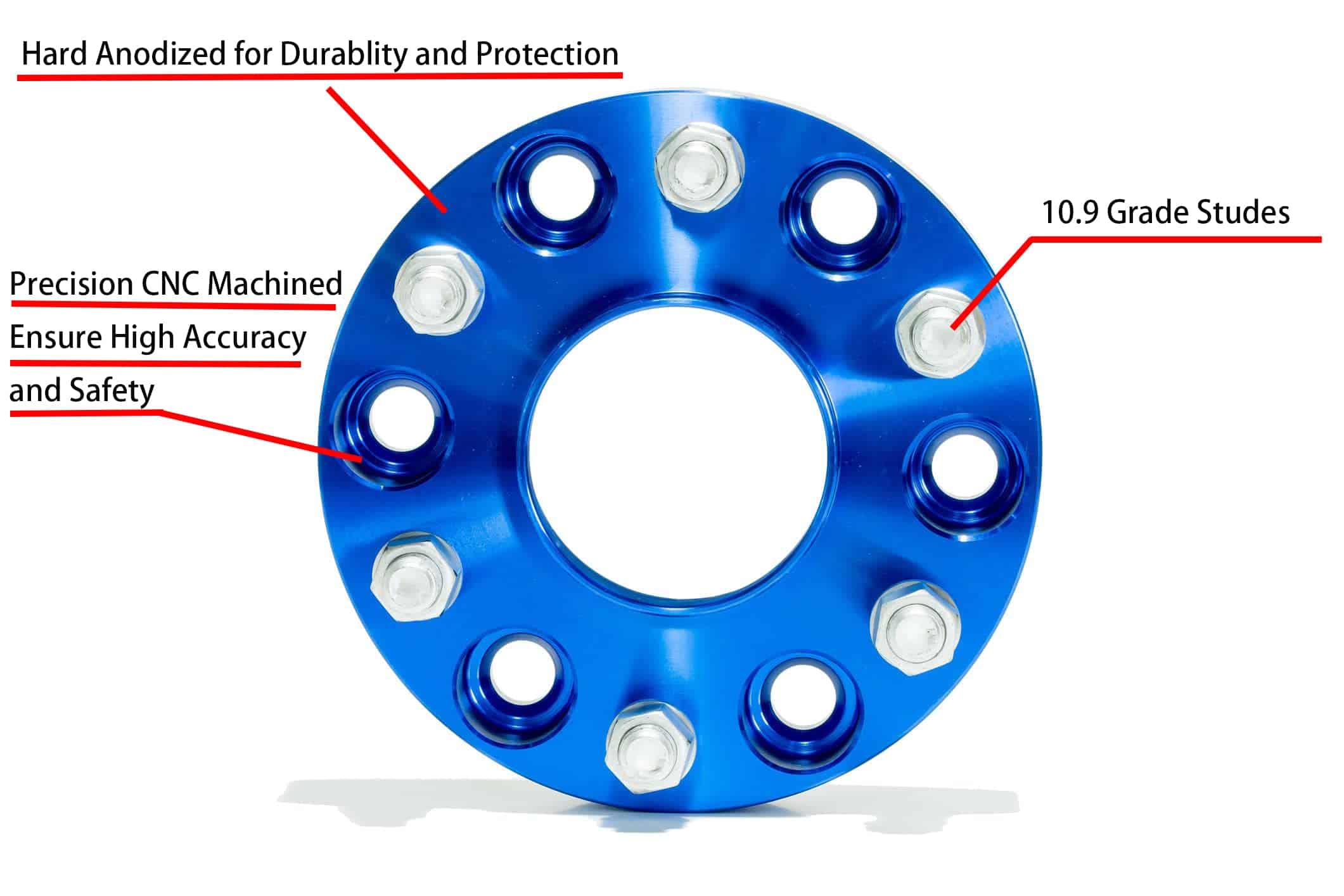 Especificación: PCD de 6×5.5(6×139.7) a 6×5.5(6×139.7) (Patrón de Perno de Vehículo/Rueda), Paso de Rosca SAE M12X1.5, Orificio de Cubo de 93.1 mm, 4 pzas con 1.5″ de grosor. Los SEPARADORES DE RUEDA RSOXTECH ampliarán la base de rueda de su automóvil, mejorando el agarre, manejo y precisión. Desarrollados en una aleación de aluminio especial a través de una tecnología de forjado innovadora, posteriormente se forjan con máquina CNC para obtener la superficie coplanar perfecta. Son tratados térmicamente para aumentar la resistencia mecánica y luego se anodizan para obtener la protección contra la oxidación.