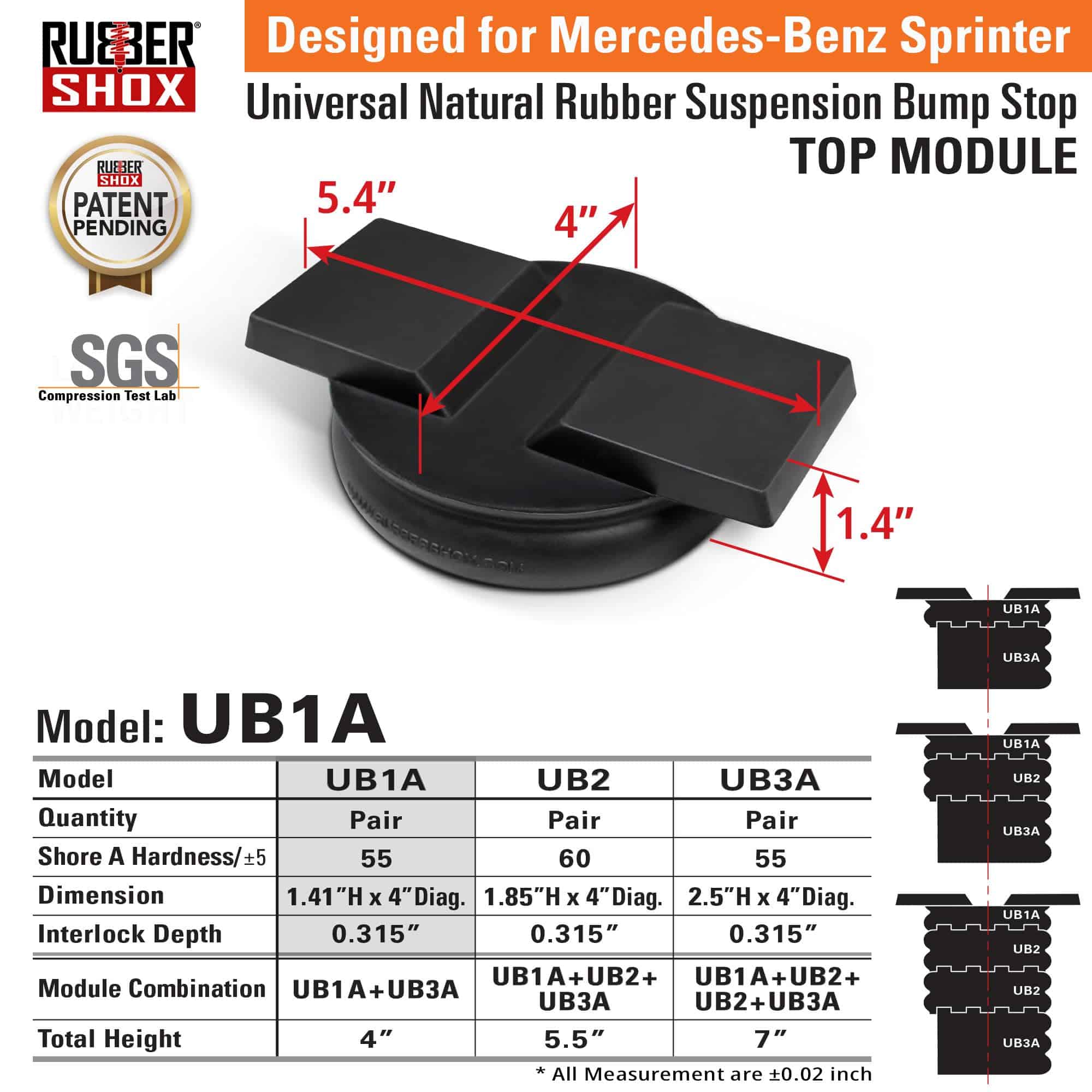 RubberShox Universal Rubber Bump Stops. It’s a Natural-Rubber Bump Stops Buffer for Truck or Recreational Vehicle (RV) front/rear Suspension System. A maintenance-free Nature Rubber Bump Stops suspension support. While soft initial contact and then increase in stiffness linearly. Offer a greater driving stability, heavy loading, off-road performance and enhanced ride comfort while extending the operational lifespan of vehicular suspension. 4500/9000 lbs-force pc/pair load capacity at 50% compression.