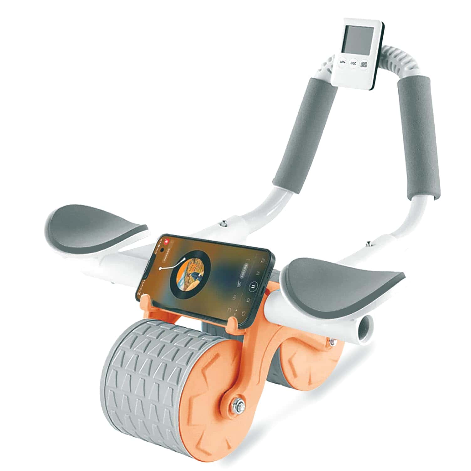 Rueda de ejercicio abdominal Bersauji 2023 con tecnología de rebote automático, freno auxiliar inteligente de rebote automático, sistema de freno incorporado, rebote de acero más suave. Este rodillo de ejercicio de abs tiene dos ruedas más anchas delanteras y traseras para un rodado suave y un mejor control. ¡Ayuda a trabajar cada músculo de tu núcleo y al mismo tiempo proporciona un control más seguro de tu cuerpo, especialmente para principiantes! Este rodillo de rebote está hecho de plástico estable y ecológico con agarres de esponja que son antideslizantes, absorbentes del sudor, cómodos, resistentes a la decoloración, duraderos, no hacen ruido ni rayan el suelo, y proporcionan una vida útil más larga. El increíble kit de rodillos para abdominales ayuda a hombres y mujeres a quemar grasa más rápido y esculpir tus abdominales¡Este rodillo está diseñado específicamente para tonificar tu cuerpo! La rueda abdominal adopta un diseño de cuatro ruedas con una rueda ancha y alargada, aumentando la distancia entre ruedas, ampliando el área de contacto con el suelo, reduciendo eficazmente el balanceo y mejorando la estabilidad durante el ejercicio.