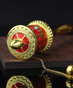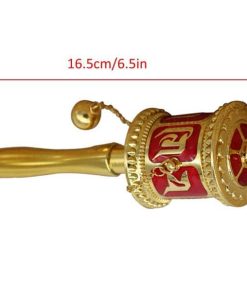 Rueda de oración de mano tibetana budista portátil para llevar contigo a donde quiera que vayas. Esta rueda de oración es una herramienta de meditación esencial para aquellos que practican la fe budista tibetana. El producto está hecho de aleación de alta calidad y cuenta con un rollo de oración en su interior. Su tamaño compacto de 6.5×1.3 pulgadas lo convierte en el compañero de viaje perfecto para aquellos que desean mantener su práctica espiritual en movimiento. ¡Haz que esta rueda de oración se convierta en tu compañero espiritual hoy mismo!