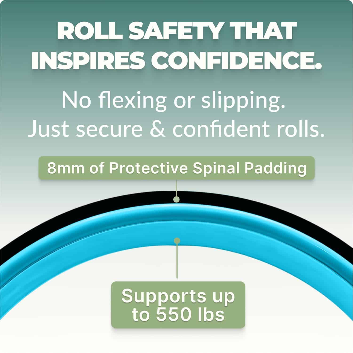 Our strategically designed 12″ x 5″ back wheel has a tough and durable ABS frame that withstands over 550 lbs so you can feel confident it will provide stability and resist snapping or breaking. The grooved textured surface provides grip so you can safely achieve deeper controlled stretches.