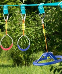 4. Actualice su slackline de patio de recreo o curso de obstáculos con más accesorios y haga el desafío de las barras de monos.