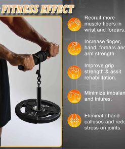 Rueda para antebrazo con asa antideslizante – Entrenador de antebrazo y muñeca – Equipo de fuerza para gimnasio en casa imprescindible para hacer ejercicio y fitness (Nylon). El Rueda para antebrazo está hecho de una estructura de acero fuerte y cuerdas de nailon duraderas, junto con asas de EVA de alta calidad, que proporcionan un agarre más fuerte y ayudan a practicar de manera más efectiva. Es un dispositivo de entrenamiento especial y altamente efectivo para fortalecer los músculos de la muñeca y el antebrazo. La correa está hecha de material de nailon, que tiene una mayor durabilidad y seguridad al hacer ejercicio. La estructura reforzada gruesa garantiza que la rueda para antebrazo no se agriete o rompa ni se resbale. El asa de espuma es efectivamente antideslizante, y la cuerda de nailon gruesa y las partes cromadas se pueden utilizar para entrenamientos de alta intensidad. Puedes montar fácilmente la rueda para antebrazo, simplemente gira el peso hacia arriba y hacia abajo, y repite la acción tantas veces como sea posible, lo que puede mejorar efectivamente la fuerza del brazo, muñeca y antebrazo. Añade más cambios y disfruta de diferentes deportes para trabajar múltiples músculos. La manga mide 15» de largo, la cuerda mide 43» de largo y el diámetro del pasador es de 1.0». El equipo de fitness no necesita mucho espacio, por lo que puedes disfrutar de la diversión del ejercicio en cualquier momento. Es adecuado para todas las placas de peso estándar de 1» y puede soportar un peso máximo de 120 lbs. El Rueda para antebrazo es ideal para ejercitar músculos y crear fuerza para entrenar. Es una excelente herramienta de rehabilitación para la mano y el antebrazo que ayuda a mejorar la fuerza del brazo, como en béisbol, tenis, baloncesto, golf, entre otros deportes. Si tienes alguna pregunta sobre el producto, por favor contacta al vendedor.