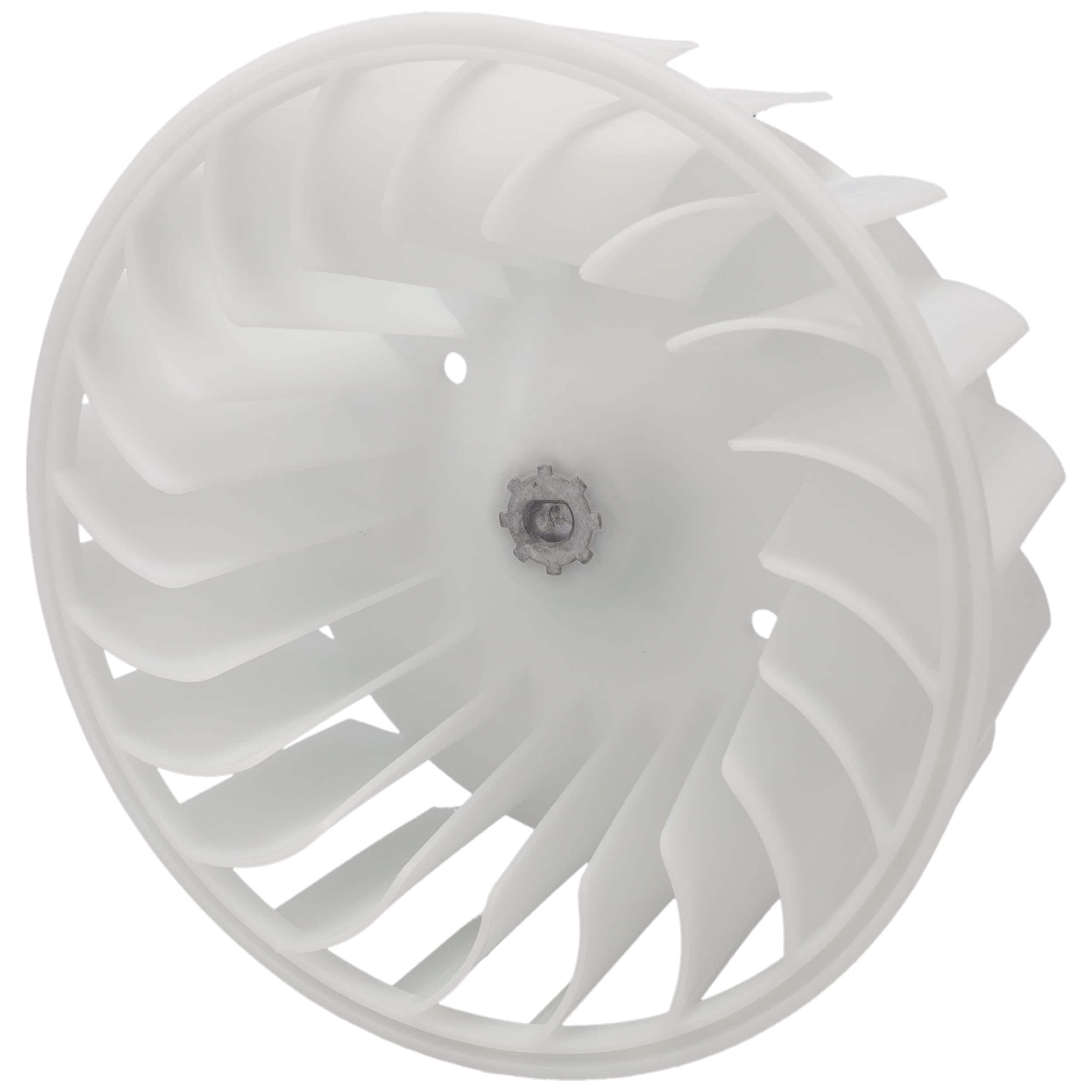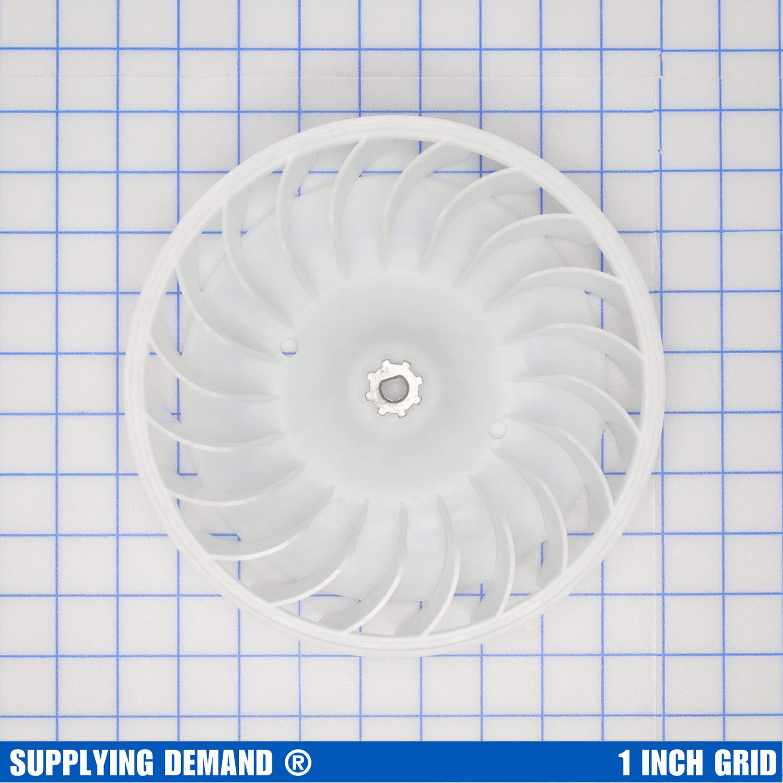 2. Ventilador de 20 aspas | Diámetro de 8-1/8 pulgadas | Espesor de 3-1/2 pulgadas | Se adapta a secadoras específicas de modelos.