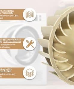 La rueda sopladora WP697772 697772 actualizada es compatible con modelos de secadoras de marcas como Whirlpool, Kenmore, Maytag, KitchenAid, Crosley, Amana, y Sears. Esta rueda sopladora está hecha de materiales de alta calidad, proporciona una potencia de viento fuerte sin ruido, operación estable a largo plazo, resistencia a la corrosión y una vida útil más larga. Se instala fácilmente y puede resolver problemas como ruido excesivo, tiempo de secado prolongado y dificultad para iniciar.