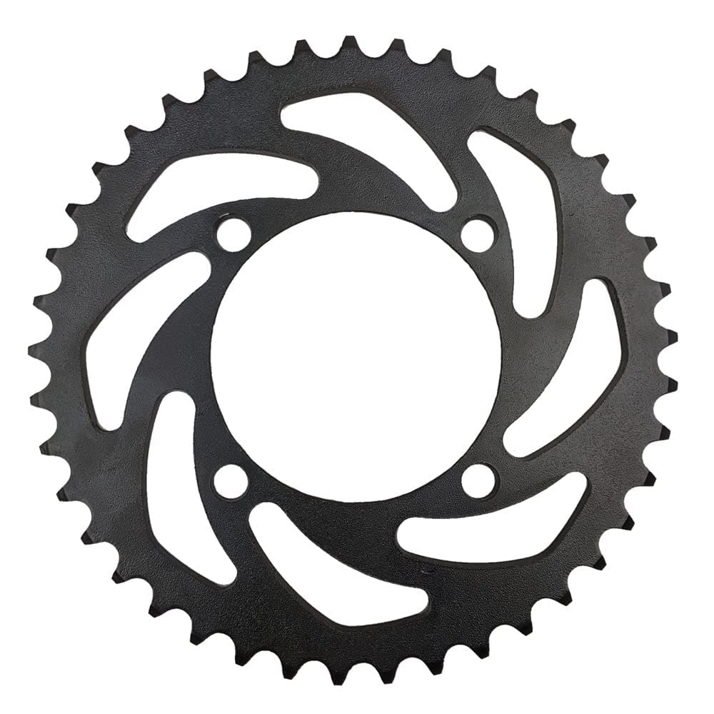 Rueda Trasera de 12″ de Acero para Eje de 15mm Color Negro con Rotor, Piñón, Llanta y Tubo Llanta trasera china para motos de tierra de 110cc, 125cc. Este tamaño se utiliza en varios modelos, incluidas las motos de tierra Apollo más nuevas. Preste especial atención al tamaño del agujero del eje. Utilice medidas detalladas y fotos para obtener la llanta correcta para su máquina. Detalles: – Negro – 12″ x 1.85″ – 32 radios – Diámetro del agujero del eje: 15mm – Ancho total de la llanta: 6.86cm (2.7″) – Diámetro total de la llanta: aprox. 33cm (13″) – Diámetro del agujero central: 12mm (.47″) – Piñón: Cadena de 428, 41 dientes – Espaciado de los agujeros del piñón: 64mm (2.52″) de centro a centro – Espaciado de los agujeros del piñón en diagonal: 91mm (3.6″) – Diámetro exterior del Rotor: 187mm (7.37″) – Espaciado de los agujeros del Rotor: 70mm (2.75″) de centro a centro – Espaciado de los agujeros del Rotor en diagonal: 100mm (3.93″) – Rodamientos: 6202RS – Ancho de la llanta a través de la rueda: 132.35mm (consulte la imagen) – Utiliza un neumático de 3.00 x 12 – Eje no incluido – Compatible con: Motos de tierra Apollo más nuevas de 110cc/125cc con ejes de 15mm