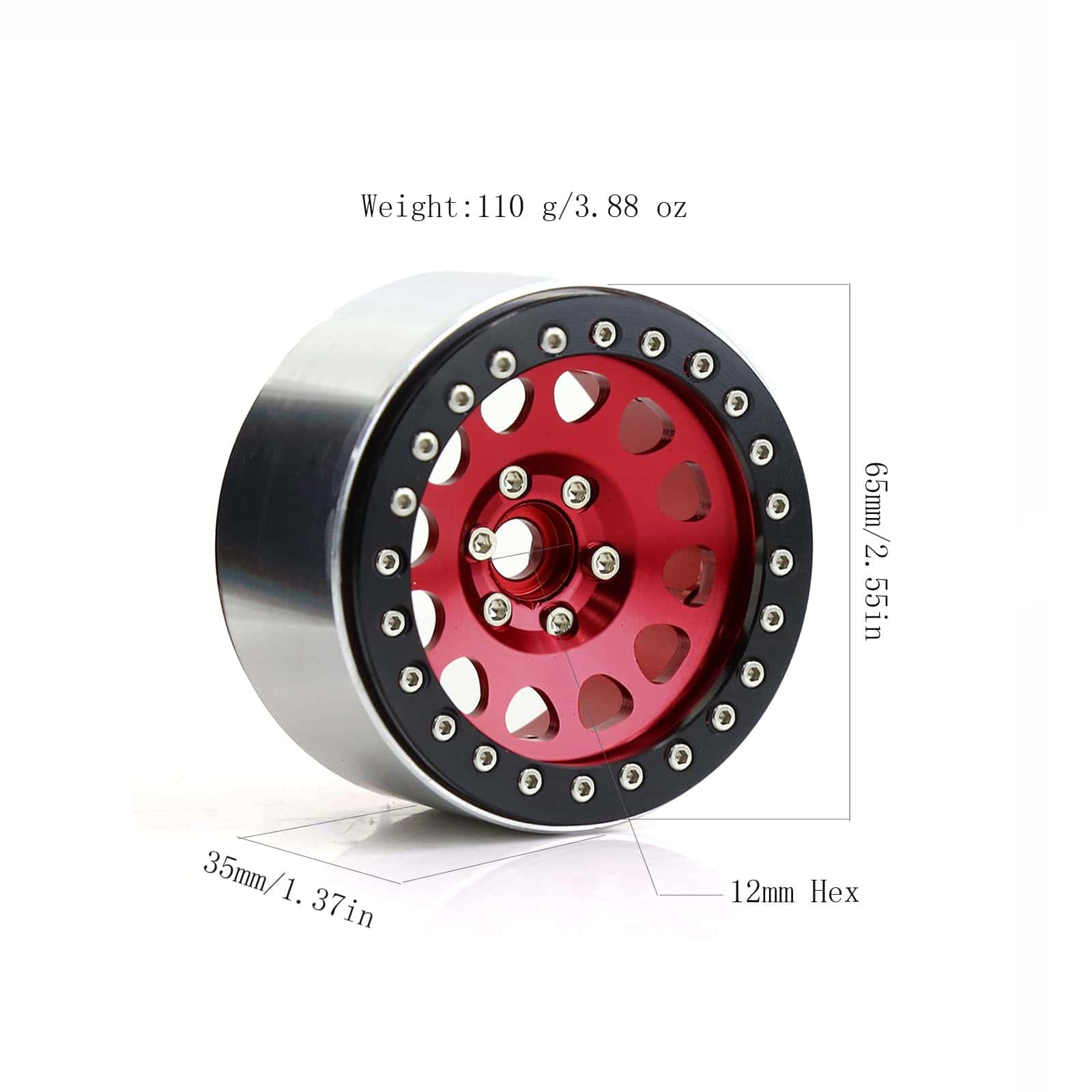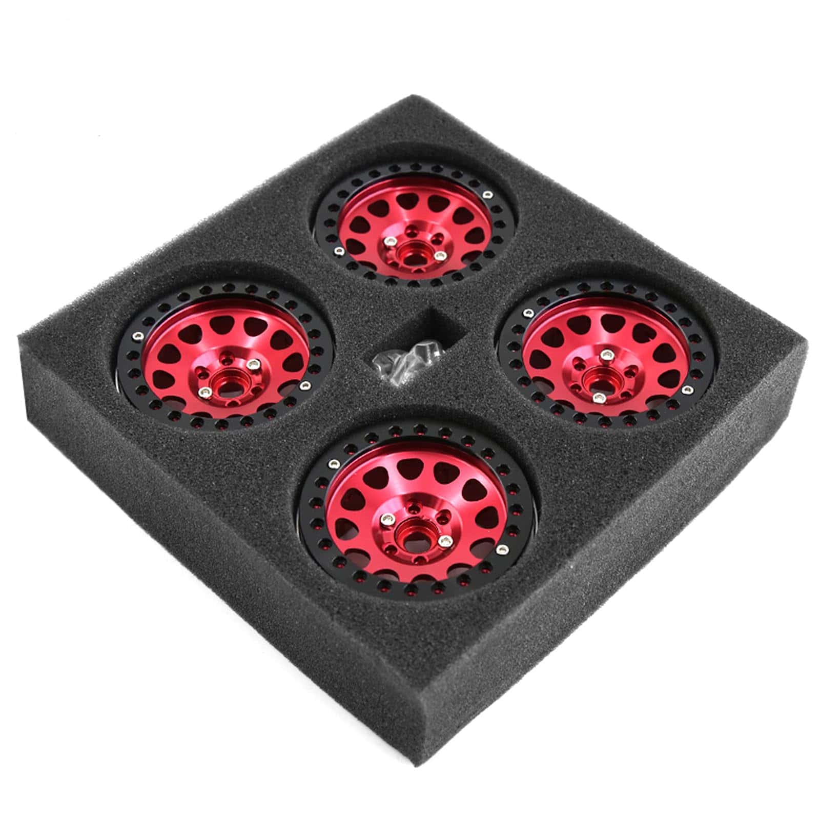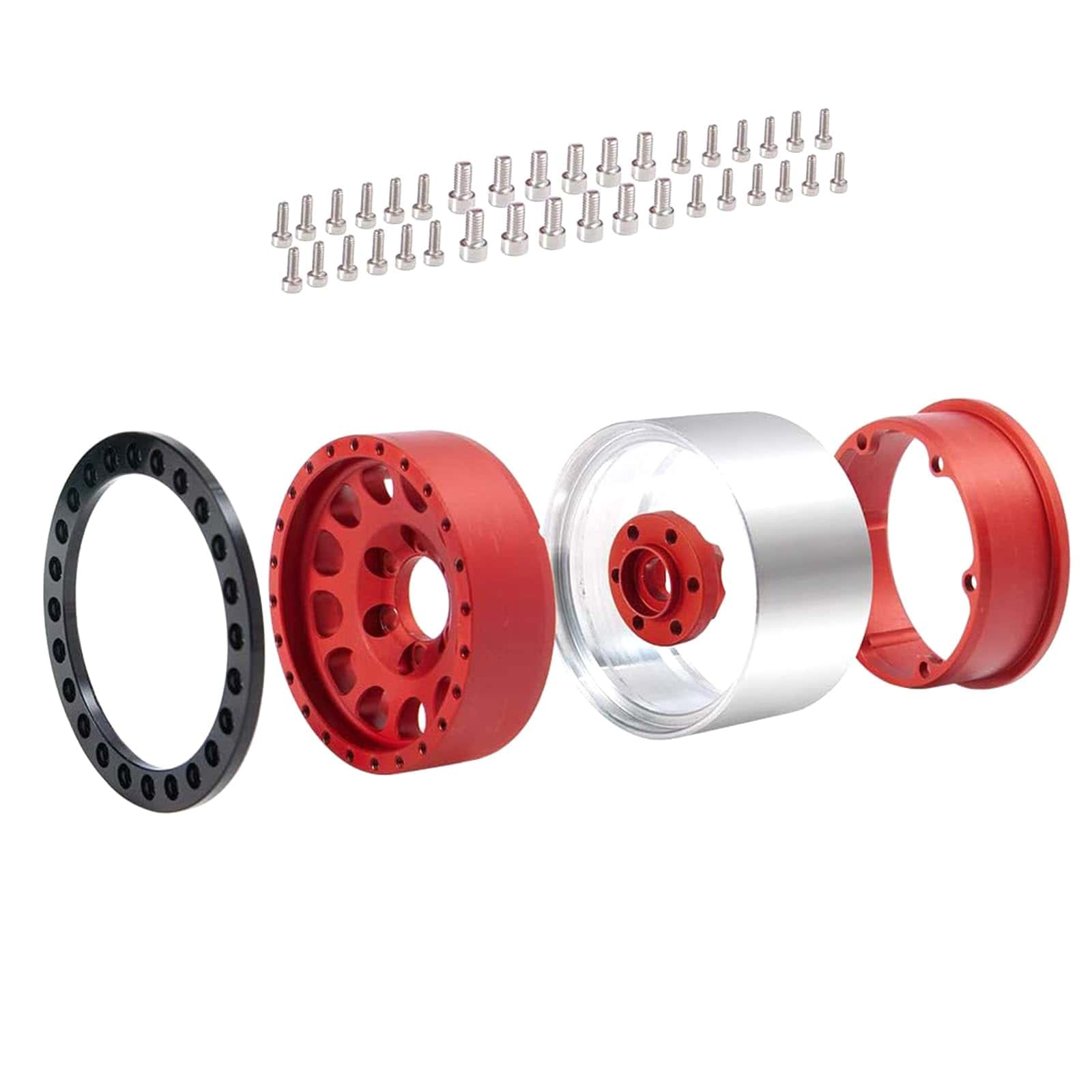 Las ruedas cuentan con un diseño novedoso y una mano de obra exquisita. Fabricadas en metal de alta calidad, estas ruedas son duraderas y resistentes a los impactos. La estructura dividida recientemente diseñada permite sujetar rápidamente el neumático. Los 24 tornillos en la parte delantera solo necesitan apretarse una vez y ya no es necesario quitarlos. La presión para bloquear el neumático provendrá de los 5 tornillos M3 dentro del cubo de la rueda. Los jugadores solo necesitan quitar los 5 tornillos M3 dentro del cubo de la rueda para reemplazar los neumáticos nuevos (los jugadores novatos también pueden operar fácilmente), lo que ha mejorado enormemente la simplicidad. Adecuado para neumáticos de 2.2 pulgadas para automóviles modelo RC de 1/10 1/8 D90 KM5 YK4082 Axial SCX10 90046 RR10 Traxxas TRX4, etc. Si no está 100% completamente satisfecho con nuestros productos, ¡contáctenos para obtener un reembolso o un intercambio lo antes posible! Su satisfacción es nuestra máxima prioridad.