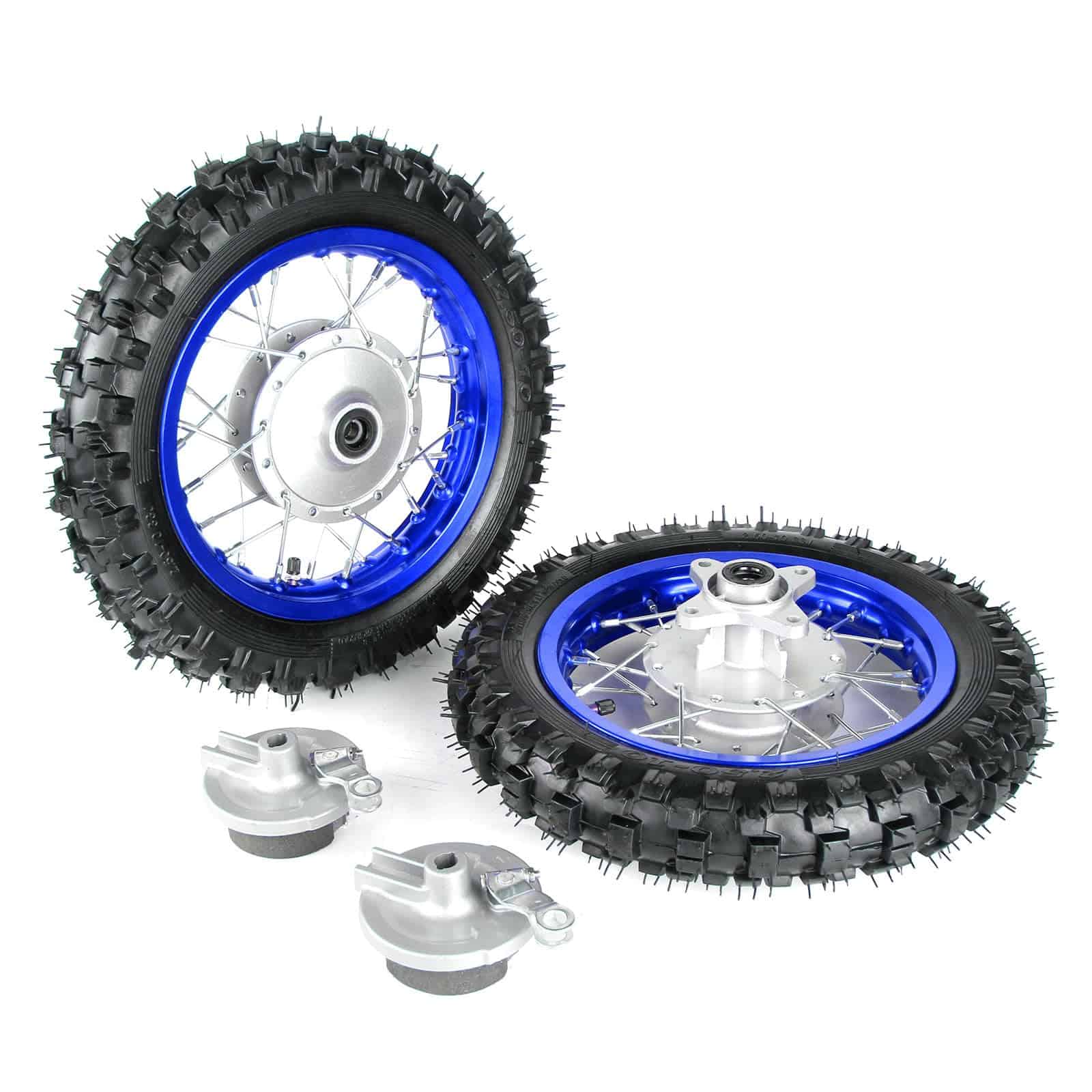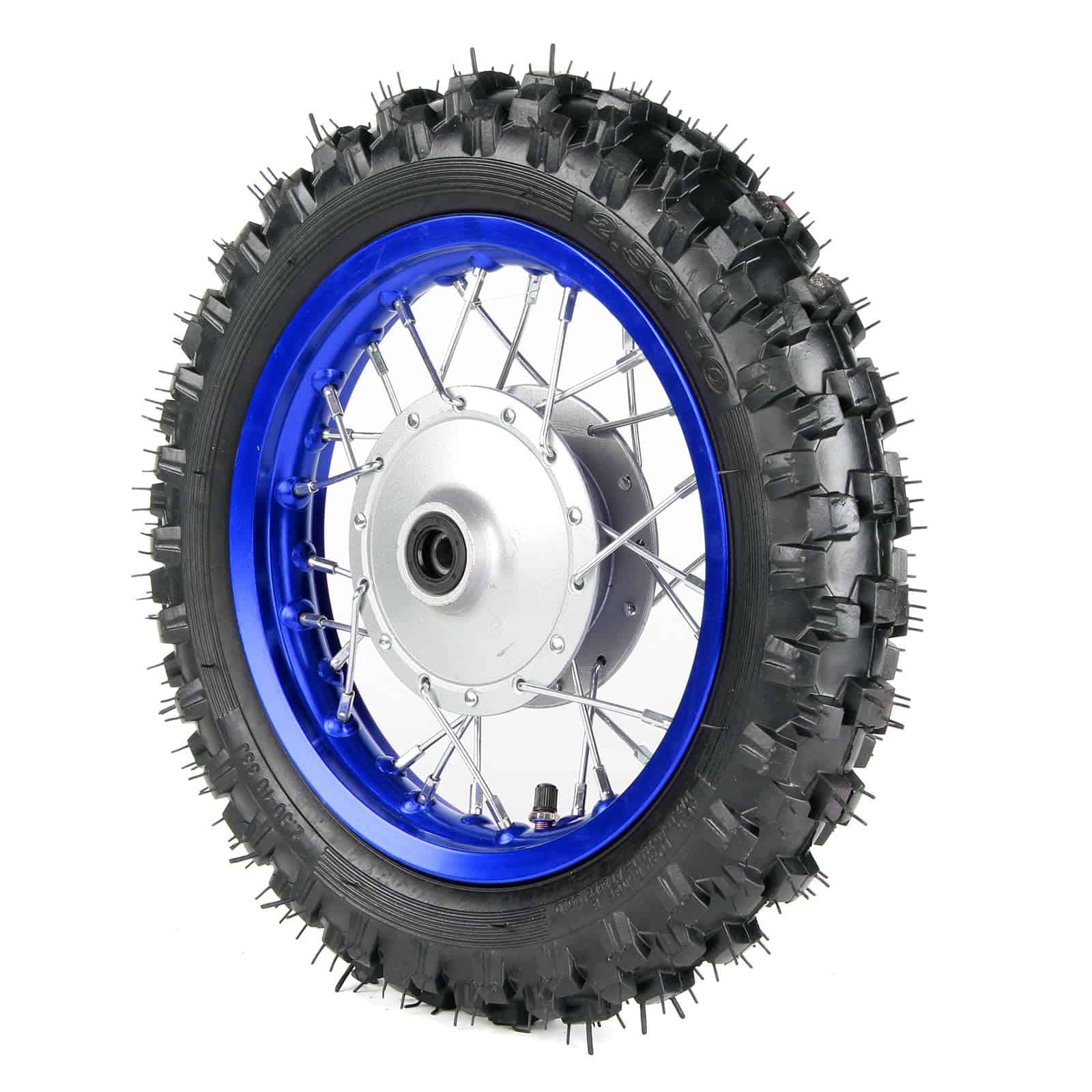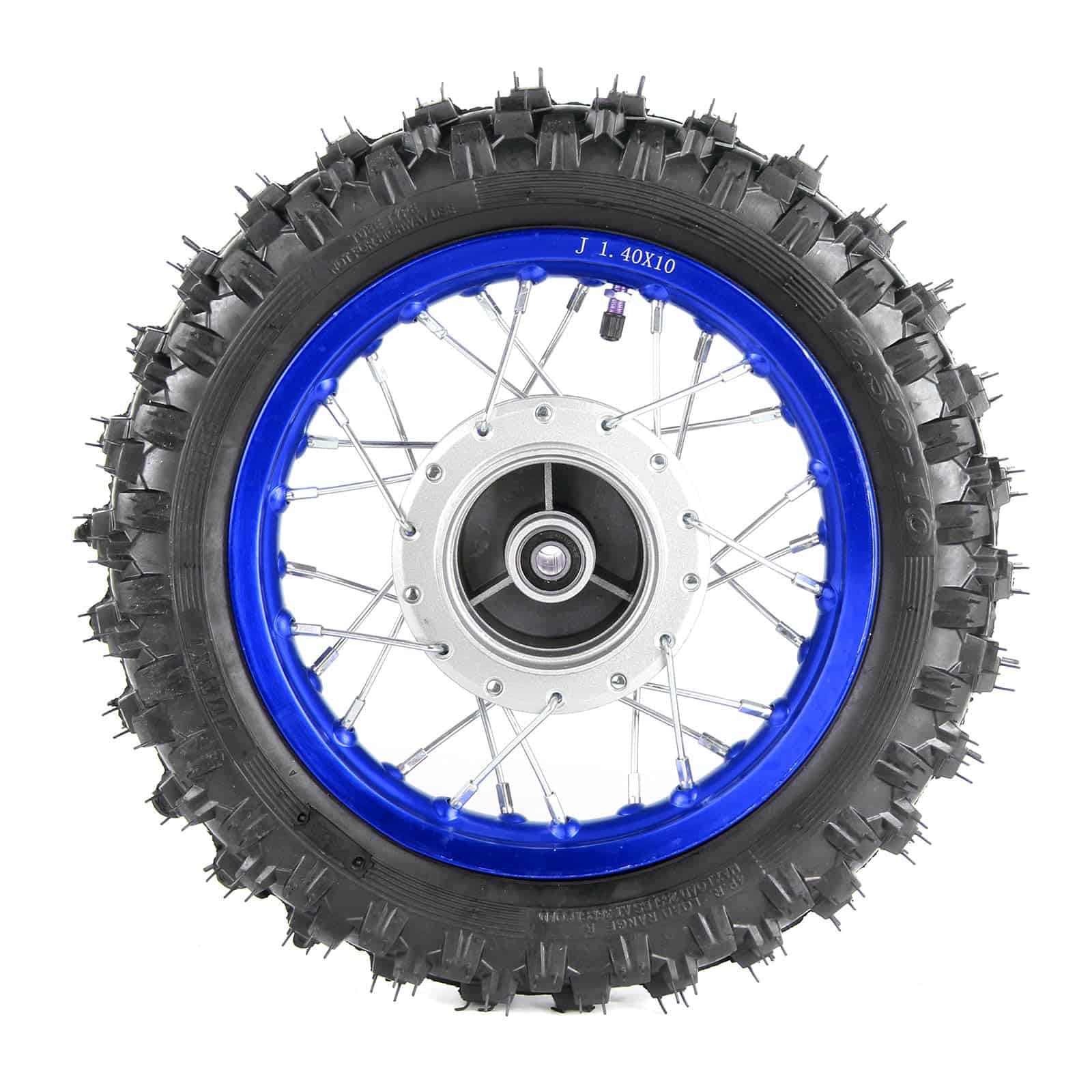 Ruedas CRF50, Neumáticos 2.50-10 y Tubo para Moto de Tierra Pit CRF50 XR50 SSR 50cc 110cc 125cc Llanta de Aleación de Aluminio 1.40-10, Zapata de Freno de Tambor de 10″ (Azul)