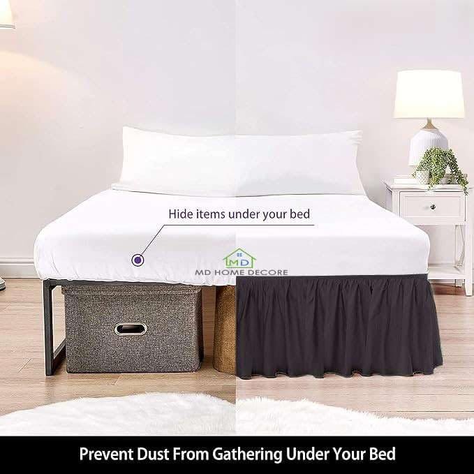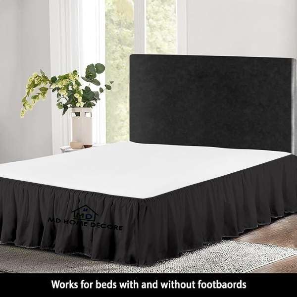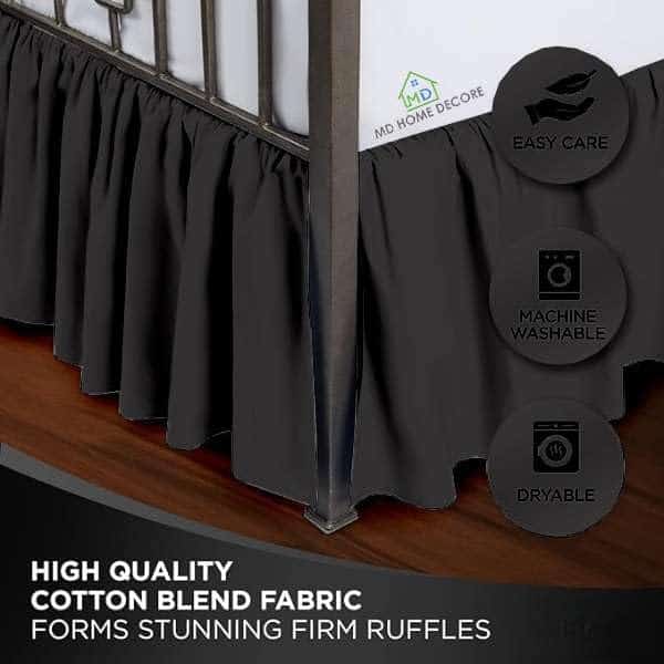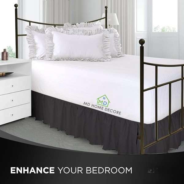 MD Home Decore ¡Especializados en diseñar, producir y exportar productos textiles para el hogar para clientes en EE. UU., nuestra empresa tiene como objetivo proporcionar comodidad, relax y belleza extra con nuestras sábanas para el hogar de alta calidad y asequibles. Respaldado por fábricas OEKO-TEX y un equipo profesional de abastecimiento, desarrollo y diseño.Decoración de Falda de Cama con Volantes: ¡Un Toque Perfecto de Acabado para tu Cama!Mejora el aspecto de tu dormitorio con esta falda de cama con volantes. Hecha con una mezcla de algodón y poliéster, esta falda de cama de calidad premium se ve bien y es duradera. La falda de cama de MD Home Decore está elegantemente con volantes en tres lados con esquinas divididas y funciona mejor en camas con postes que interfieren con las faldas de cama ordinarias.Características Detalladas con volantes en tres lados para un aspecto lujoso Tela sólida decorativa de alta calidad Esquinas divididas Hecho en IndiaDetalles del Producto Material: Microfibra Método de limpieza: Lavado a máquinaMúltiples tamaños y colores Con 10 colores para elegir, estas faldas de cama combinan bien con la mayoría de los conjuntos de ropa de cama. Elija el tamaño adecuado para su cama. Tenemos todos estos tamaños de cama: falda de cama individual, falda de cama completa, falda de cama queen, falda de cama king, falda de cama cal king.Cuidado Fácil Hechas de mezcla de poliéster/algodón fácil de cuidar, estas faldas de cama no tienen arrugas y son resistentes a la decoloración. Lavar a máquina en agua fría, secar a baja temperatura.