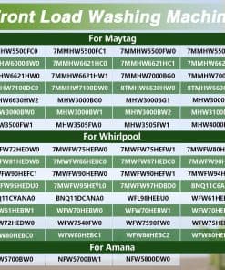 3. Compatible con: Lavadora de carga frontal: MHW5500FC0, MHW5500FC1, MHW6000AG1, MHW6000AG2, MHW6000XG1, MHW6000XG2, MHW6000XR0, MHW6000XR1, MHW6000XR2, MHW7000XG0, MHW7000XG1, MHW7000XG2, MHW7000XR0, MHW7000XR1, MHW7000XR2, MHW7100DC0, MHW7100DW0, MHW8000AG0, MHW8000AW0, MHW8100DC0, MHW8100DW0, MHW8150EC0, MHW8150EW0, BNQ11C6ANA0, BNQ11CVANA0, BNQ11DCANA0, WFL98HEBU0, WFW61HEBW0, WFW61HEBW1, WFW7OHEBW0, WFW70HEBW1, WFW70HEBW2, WFW72HEDW0, WFW7540FW0, WFW7590FW0, WFW75HEFW0, WFW80HEBC0, WFW80HEBC1, WFW80HEBC2, WFW80HEBC2, WFW85HEFC0, WFW85HEFC1, WFW85HEFW0, WFW85HEFW1, WFW8640BC0, WFW8640BC1, WFW8640BC2, WFW8640BW0, WFW8640BW1, WFW8640BW2, WFW86HEBC0, NFW5700BW0, NFW5700BW1, NFW5800DW0.