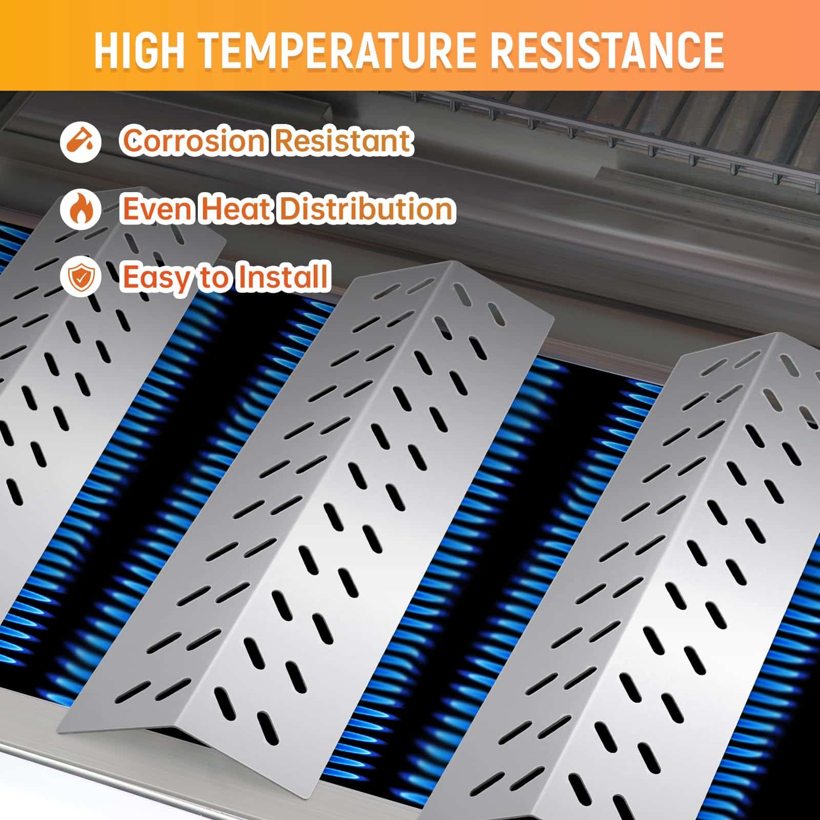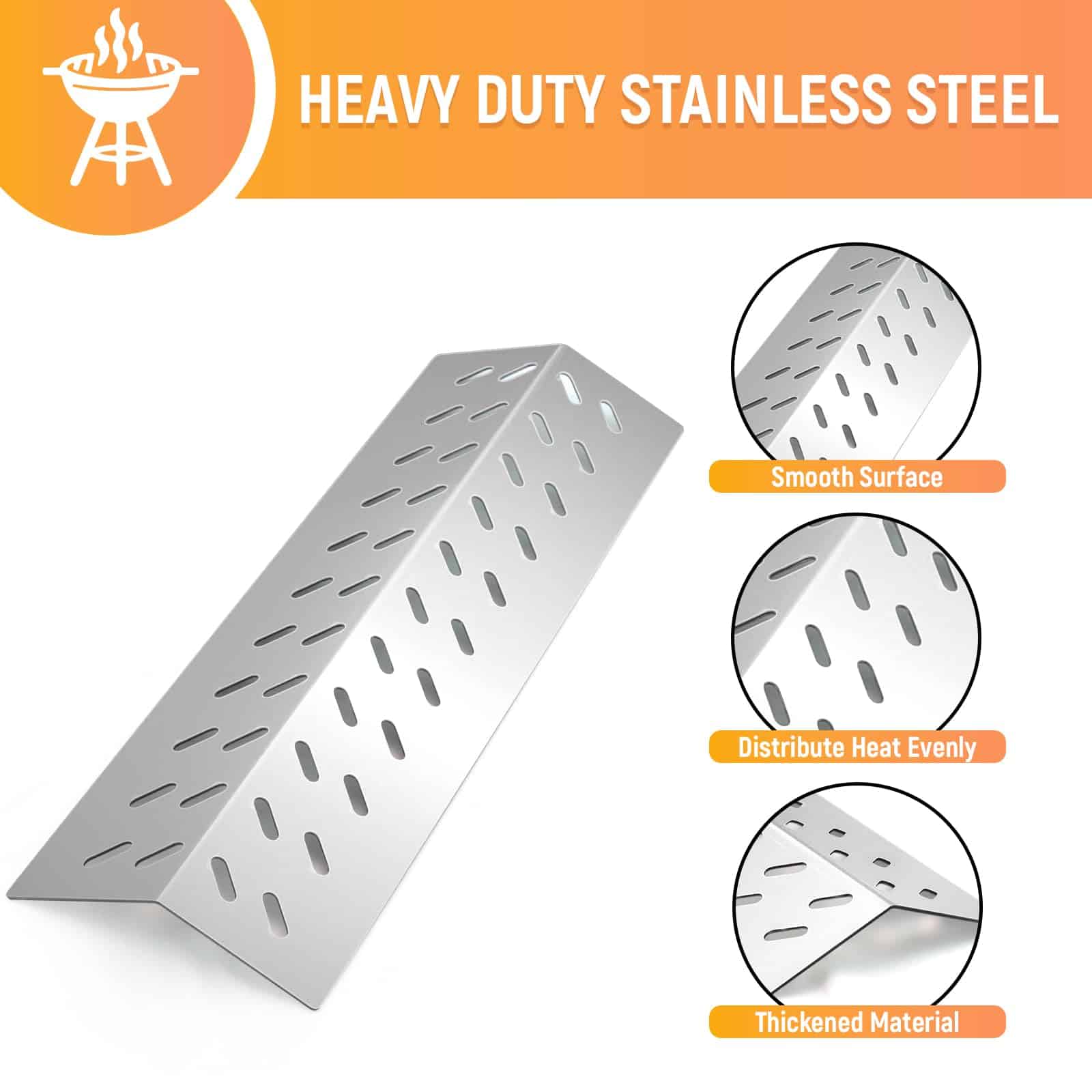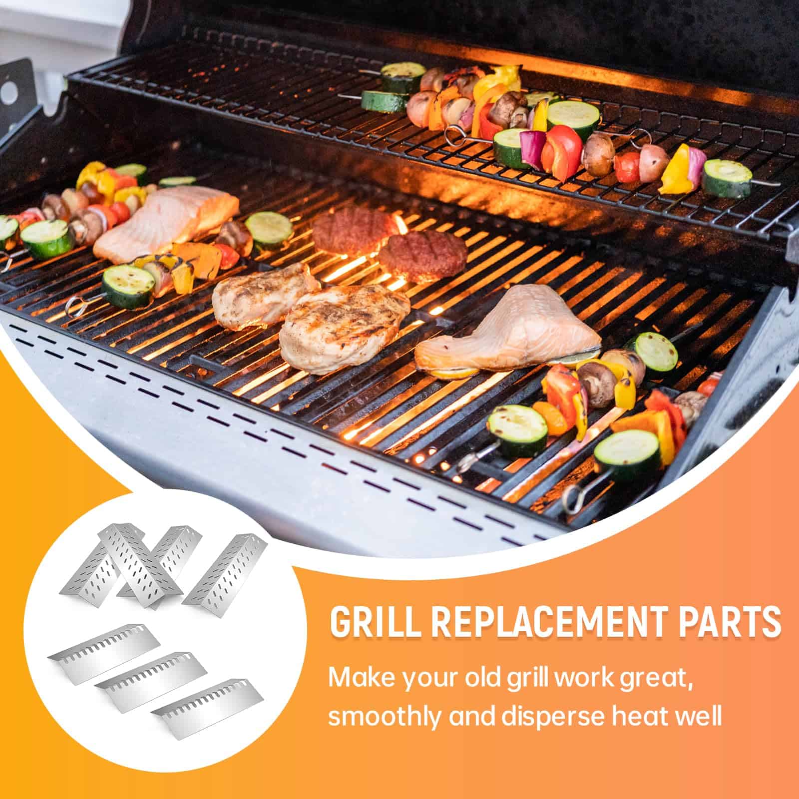 5. Añade sabor a tu comida favorita Reemplazando tu protector de llama de parrilla Bull original con este protector de llama de parrilla Bull, puedes cocinar los alimentos de manera más uniforme y evitar las llamas. Capturando las gotas de grasa y convirtiéndolas rápidamente en humo sabroso, tus piezas de repuesto para parrilla bull no solo evitan las llamas, sino que también añaden sabor a tu carne o pescado favorito.