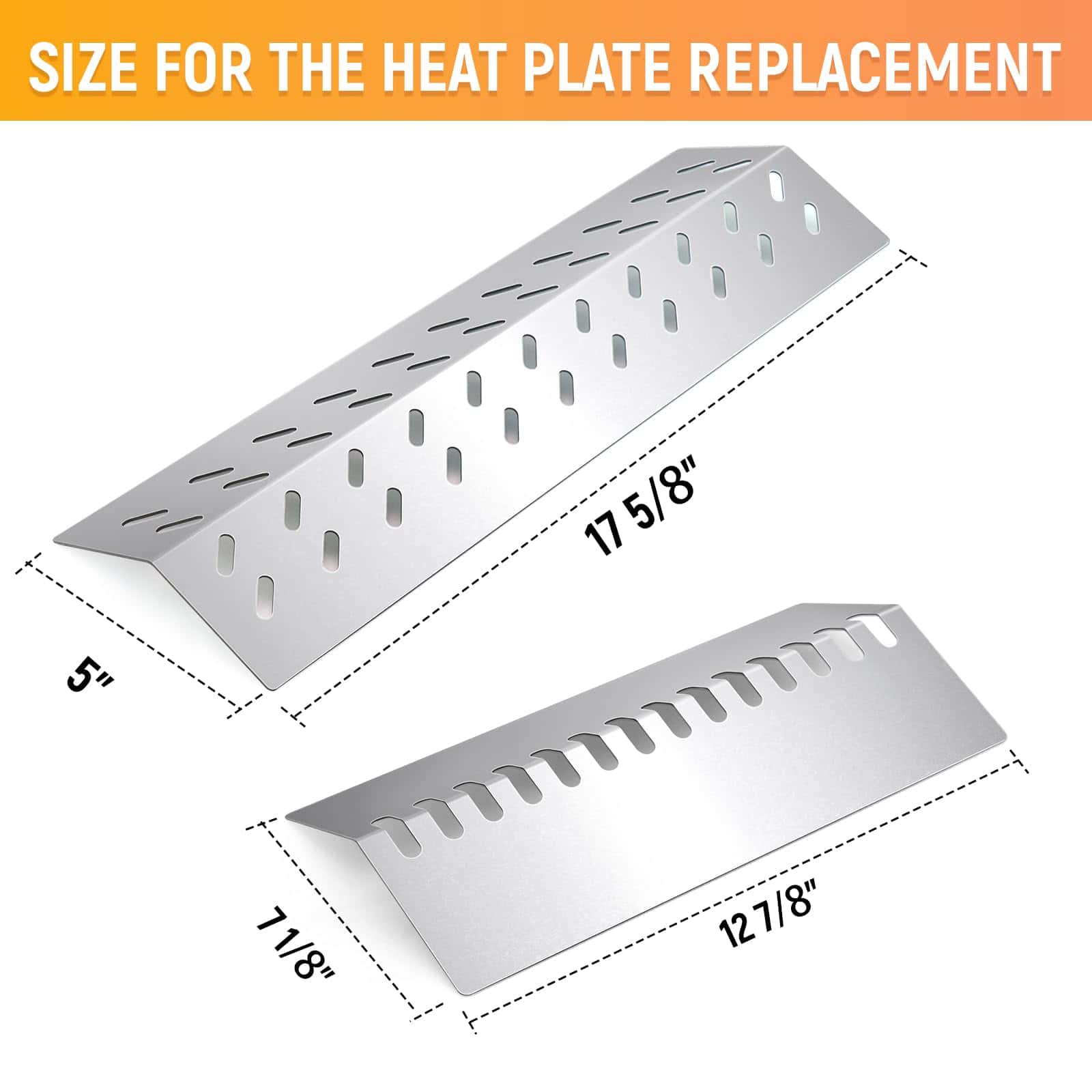 6. DIMENSIONES Y MATERIALES 4 piezas de parrilla de acero inoxidable Protector de llama de acero inoxidable 17 5/8″ x 5″; 3 piezas de protector de calor de llama de acero inoxidable 12 7/8″ x 7 1/8″. TEN EN CUENTA QUE NO SE ADAPTA A MODELOS CON PANEL DE CONTROL LATERAL.