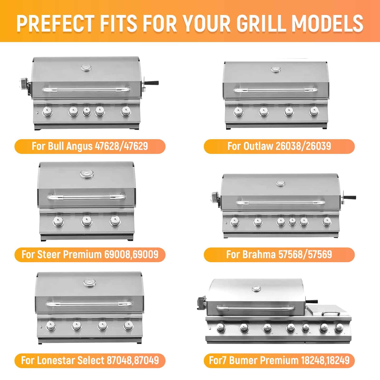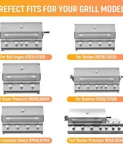 2. Se ajusta a la parrilla Bull Steer Premium 69008, 69009 y más. Se ajusta perfectamente a la parrilla Bull Lonestar de 4 quemadores: 87048, 87049, 87048CE, 87049CE. Se ajusta perfectamente a la parrilla Bull Outlaw de 4 quemadores: 26038, 26039, 26038CE, 26039CE. Se ajusta perfectamente a Lion Premium: parrillas Lion Premium de 4 quemadores L75000, L60000, L9000, 75000, 60000, 90000, 68154.