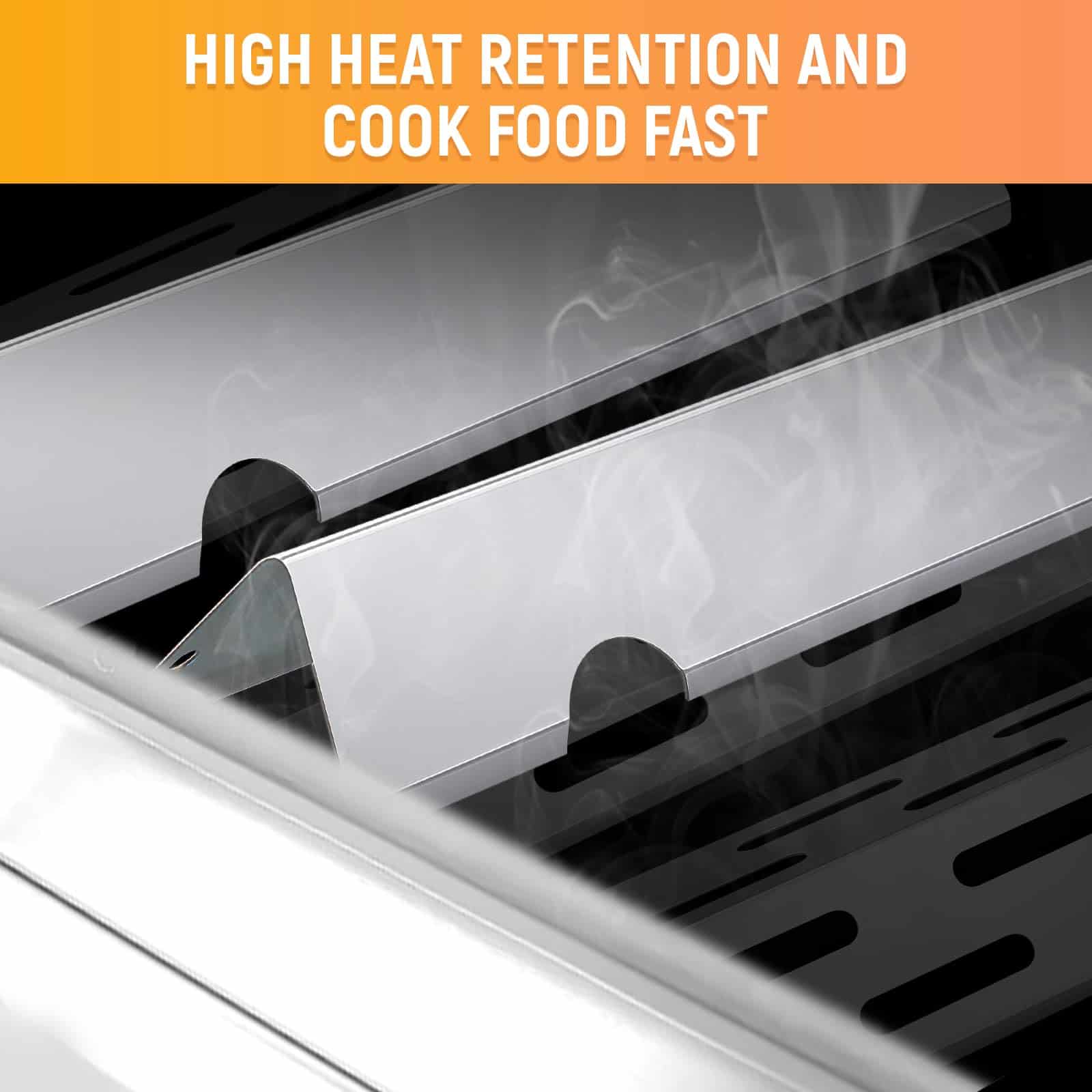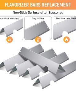 3. Acero Inoxidable de Calidad Premium: Elaboradas en acero inoxidable de alta resistencia, estas barras saborizantes y deflectores de calor son no magnéticas y están diseñadas para una excelente resistencia a la corrosión y al calor. Una mejora confiable para las partes de tu parrilla Weber Genesis.