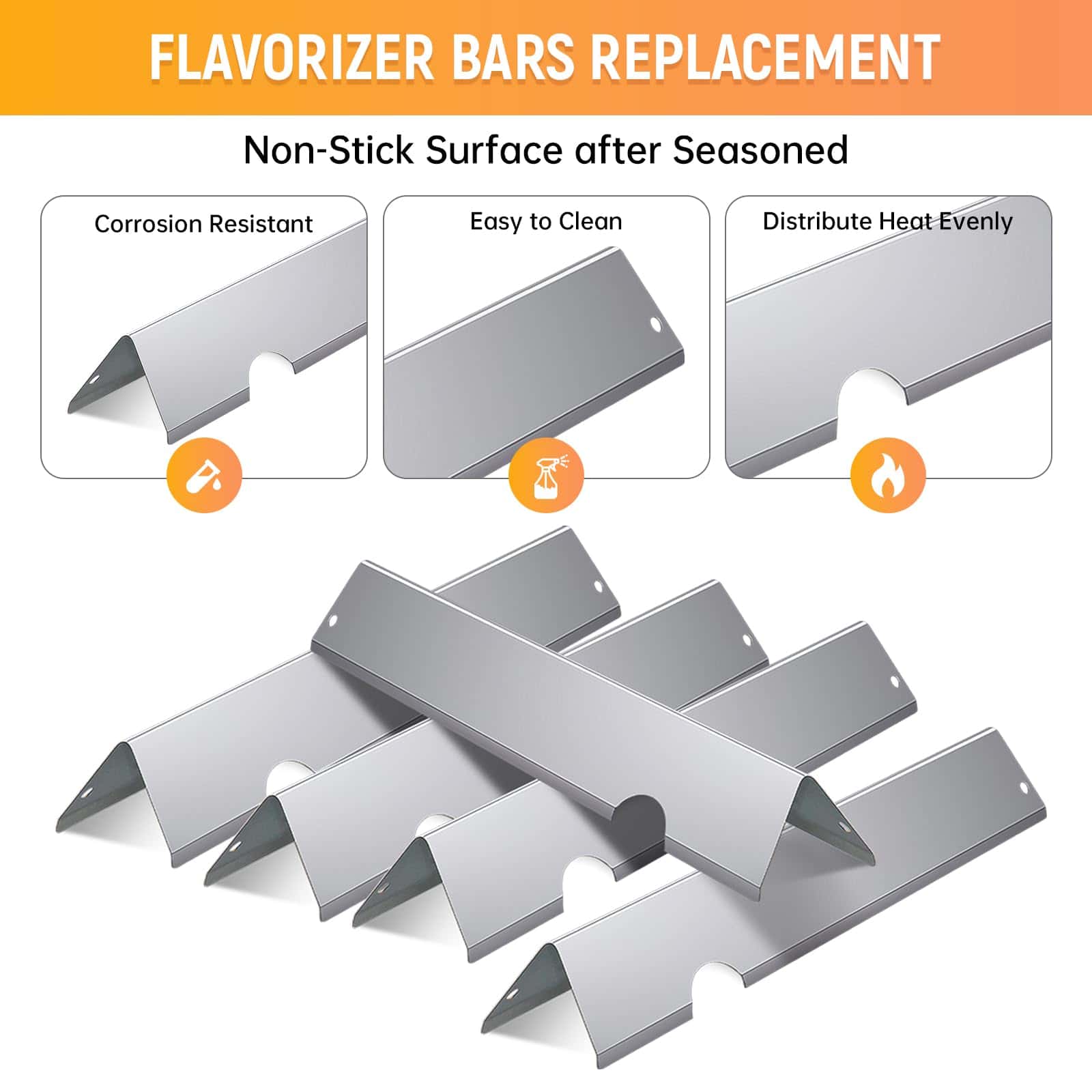 Calidad Premium de Acero Inoxidable: Elaboradas en acero inoxidable de alta calidad, estas barras saborizantes y deflectores de calor son duraderos y resistentes a la corrosión y al calor. Una actualización confiable para las partes de tu parrilla Weber Genesis.