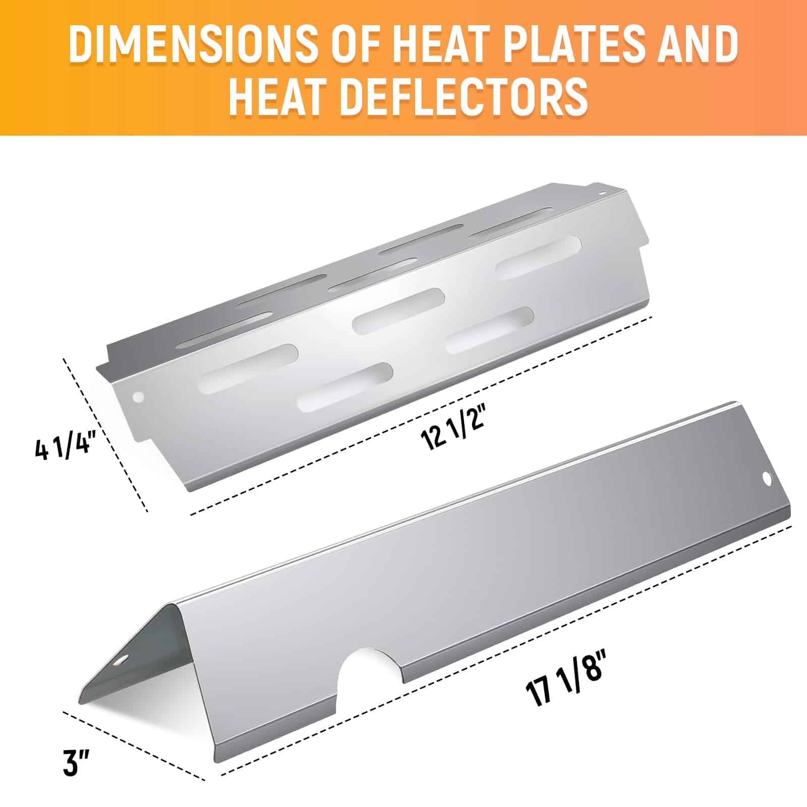 Dimensión y Nota: Recibirás 5 piezas de barras saborizantes genesis ii de Weber y 3 deflectores de calor. La dimensión de las barras saborizantes de genesis ii de Weber es 3 W x 17 1/8 L x 2 H, el deflector de calor de genesis ii de Weber es 4 1/4 W x 12 1/2 L para cada uno. Por favor, ten en cuenta que nuestros productos NO se ajustan a las series Weber Genesis 300 anteriores a 2017
