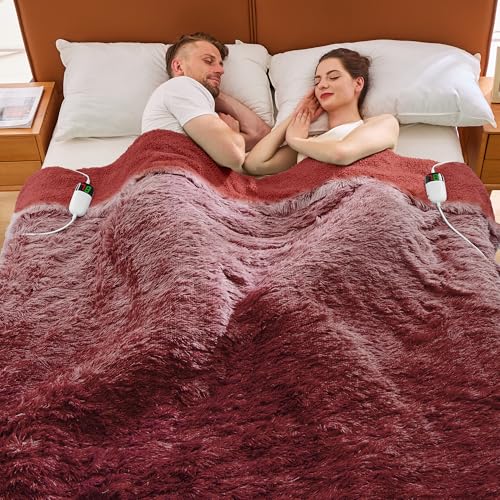 1. Suave, lujosa y un Buen Regalo de Navidad: Esta manta eléctrica roja está hecha de material peludo y acogedor que garantiza una experiencia acogedora y cálida. Esta manta eléctrica combina una capa exterior de piel sintética con una capa interior sherpa de alta calidad, acogedora y suave. Esta combinación garantiza una experiencia amigable con la piel y cómoda al tiempo que mantiene el calor óptimo para los días acogedores de invierno. Es un regalo de Navidad ideal para alguien a quien le gusta acurrucarse durante el invierno. 2. Dos Controladores Flexibles: El controlador de nuestra manta eléctrica de felpa calefactada ofrece más flexibilidad que los modelos estándar. Elija entre 5 períodos de apagado programados (1h, 2h, 4h, 6h, 8h) para adaptarse a diferentes escenarios. La manta eléctrica de felpa suave tiene 10 ajustes de temperatura que van desde 86 F a 113 F. Puede cumplir con el control de temperatura independiente de doble zona, y la pareja puede elegir el ajuste de temperatura y el esquema de programación que se adapte a sus necesidades. Nota: Mantenga el controlador fuera de la manta para un uso seguro. 3. Diseño Único de Color Gradiente: Destáquese con nuestra manta eléctrica de tiro peludo de color gradiente. Esto es lo que nos diferencia de la mayoría de las mantas eléctricas en el mercado. Su diseño colorido ofrece un toque estilizado y hermoso, personalizado. Este diseño lindo es popular entre los niños y los jóvenes. Es un buen equilibrio entre lo clásico y la moda, que no solo se ve clásico, sino que también tiene un enfoque inteligente. Cuando no está en uso, sirve como un accesorio de dormitorio elegante en su cama o sofá. 4. Seguro y Ahorro de Energía: La manta calefactora tiene la certificación de autoridad ETL y la certificación FCC reconocida. La función de apagado automático le ayuda a dormir tranquilamente sin preocupaciones, ya que la manta se apagará automáticamente después de 8 horas. Puede comprarla como regalo para niños y ancianos sin preocuparse de que olviden apagar la energía. Comparado con el aire acondicionado o la calefacción por suelo radiante, la manta de calefacción RUJIPO es más eficiente en energía y puede ahorrar más en costos de calefacción en invierno. 5. Desmontable y Lavable: Tire fácilmente de la interfaz del cable de alimentación para usar la manta como un tiro regular. Además, el mantenimiento de la manta eléctrica de felpa es muy sencillo. El alambre de conducción de calor dentro de nuestra manta eléctrica de felpa ha sido probado y mejorado. Para mantener la manta calefactora sanitaria y suave, la manta eléctrica se puede lavar, PERO NO SE RECOMIENDA EL SECADO.
