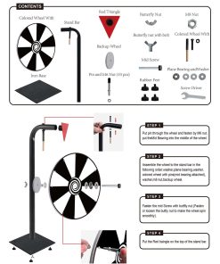 El producto fue diseñado para ser robusto y confiable. Los rodamientos de bolas duraderos mantienen su ruleta girando libremente. 10 ranuras de premio personalizables para logotipo o texto. Superficie de borrado en seco para una edición rápida y sencilla. Soporte desmontable para un fácil almacenamiento y montaje conveniente. Lleva la diversión del carnaval a ferias comerciales, supermercados/tiendas de comestibles, colegios y escuelas, clubes/gimnasios, iglesias, restaurantes y bares deportivos, tiendas minoristas, juegos de trivia, estaciones de radio y televisión, shows/fiestas de cosmética y belleza, apreciación del empleado.