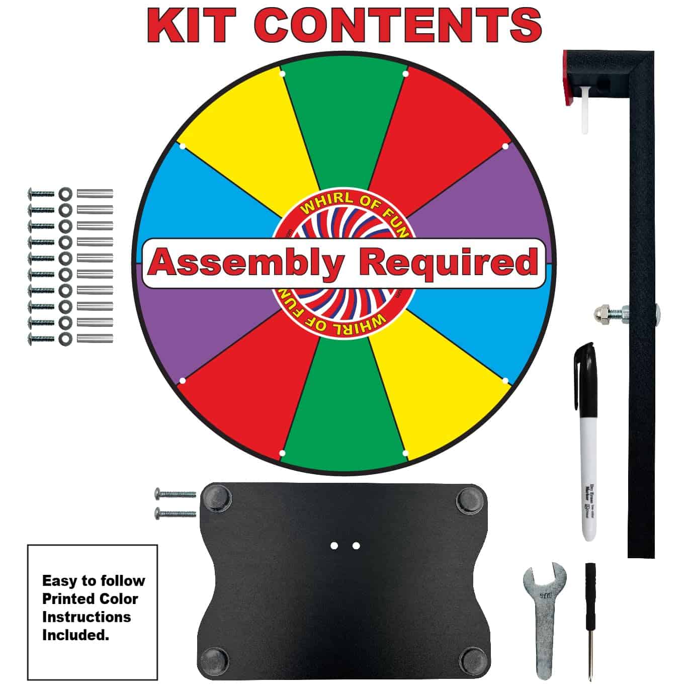 Todo Incluido: Base de Soporte Vertical de la Ruleta de Premios con pies antideslizantes Todas las Herramientas Marcador de Borrado en Seco Instrucciones Impresas Fáciles de Seguir