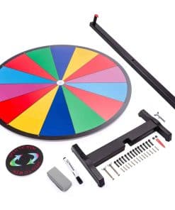 La Ruleta de Premios Giratoria de 24″ de T-SIGN – 14 Ranuras Ruleta de Premios de Mesa de Color ResistenteDiseñado para ser resistente y confiable. Los rodamientos de bolas duraderos mantienen su ruleta girando libremente. 14 ranuras de premios personalizables para logotipo o texto. Superficie de borrado en seco para edición rápida y fácil. Soporte desmontable para un almacenamiento fácil y un montaje conveniente. Lleve diversión de feria a exposiciones comerciales, supermercados/tiendas de abarrotes, colegios y escuelas, clubes/gimnasios, iglesias, restaurantes y bares, tiendas minoristas, juegos de trivia, estaciones de radio y televisión, programas de belleza y cosméticos, fiestas y shows de aprecio a empleados. Paquete Incluye: 1 Ruleta de Premios Colorida1 Base Resistente1 Marcador de Borrado en Seco y Borrador1 Instrucciones detalladasTodo el hardwareAvisos:1. Se recomienda usar marcadores a base de agua para un mantenimiento más fácil2. Limpie la pizarra a tiempo después de usarla; Use un paño húmedo para limpiar si las marcas han sido dejadas por mucho tiempoServicio al Cliente:Por favor, lea detenidamente las instrucciones del producto, en caso de dificultades, no dude en contactarnos.Nuestro Objetivo es Servirle hasta que Obtenga su SatisfacciónSobre T-SIGNT-SIGN es un fabricante profesional de soportes de alta calidad, tenemos veinte años de experiencia en esta industria, producimos cientos de miles de productos de soportes cada mes, desde ruletas de premios, soportes de carteles, soportes de banners, soportes de revistas, soportes de fondo y soportes X, etc. Cada uno de nuestros productos está cuidadosamente fabricado y rigurosamente probado antes de venderlo. ¡T-SIGN quiere seguir trayendo soportes de la mejor calidad a clientes de todo el mundo! No solo hablando de ello, ¡nos mantendremos firmes en ello!