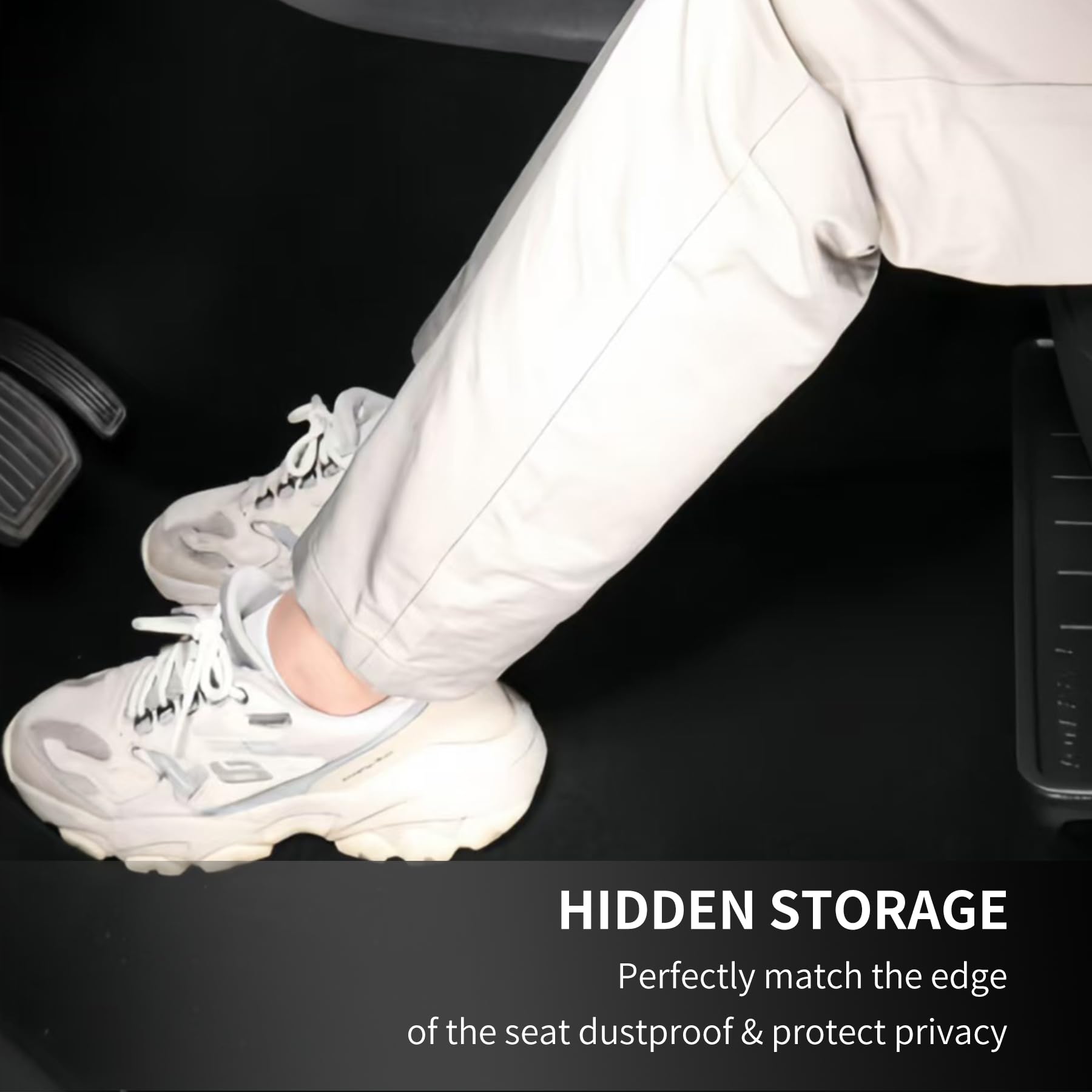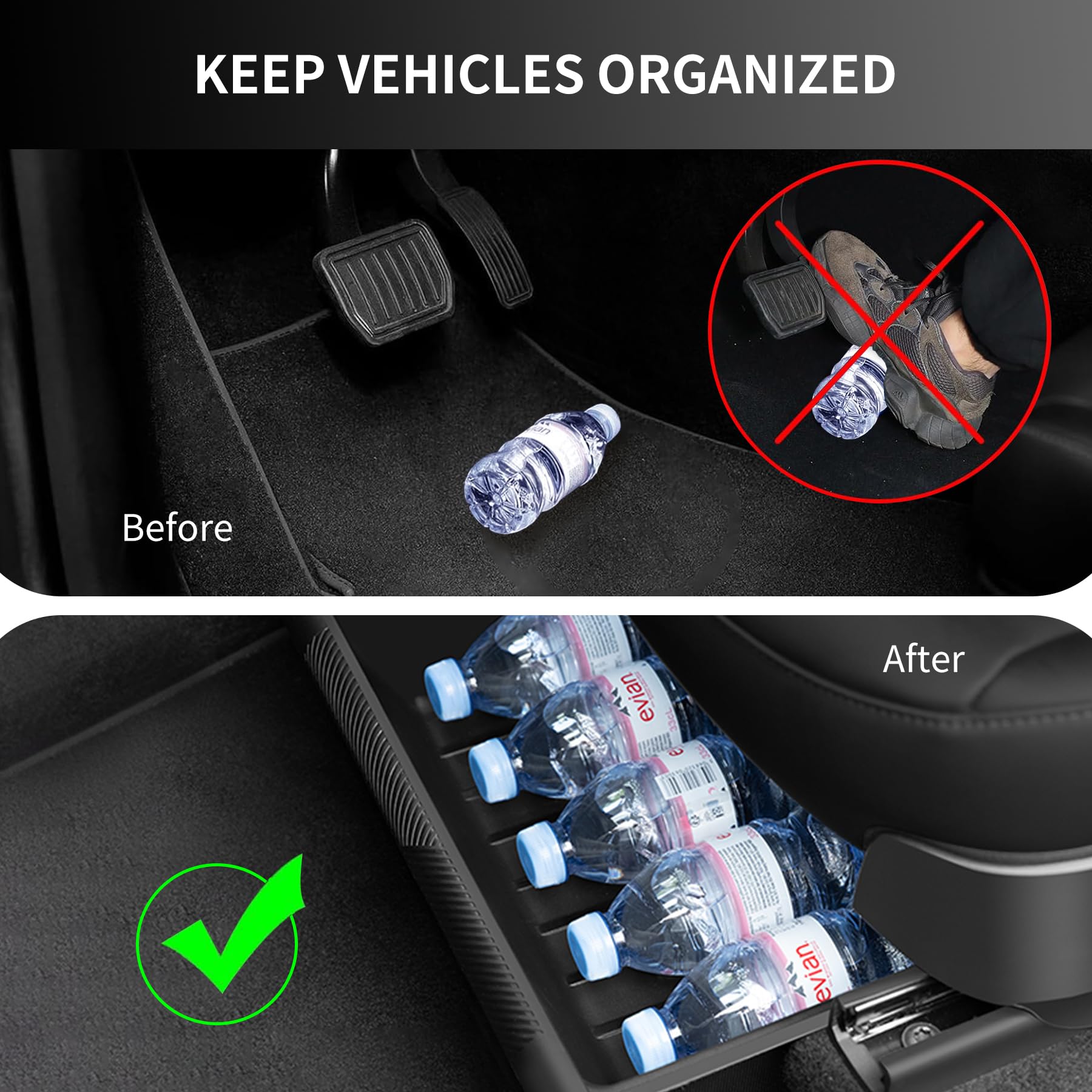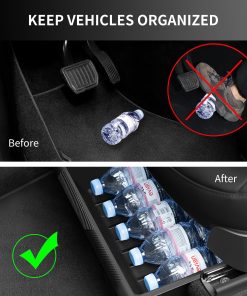 4. Privacidad y Almacenamiento Mejorados Nuestro organizador oculto de almacenamiento bajo el asiento del Modelo Y cuenta con una tapa personalizada para proteger perfectamente la privacidad y garantizar un interior limpio. Almacene juguetes, bebidas, llaves, servilletas, cables USB, zapatos, botellas de agua, paraguas, herramientas y más sin crear un desorden.