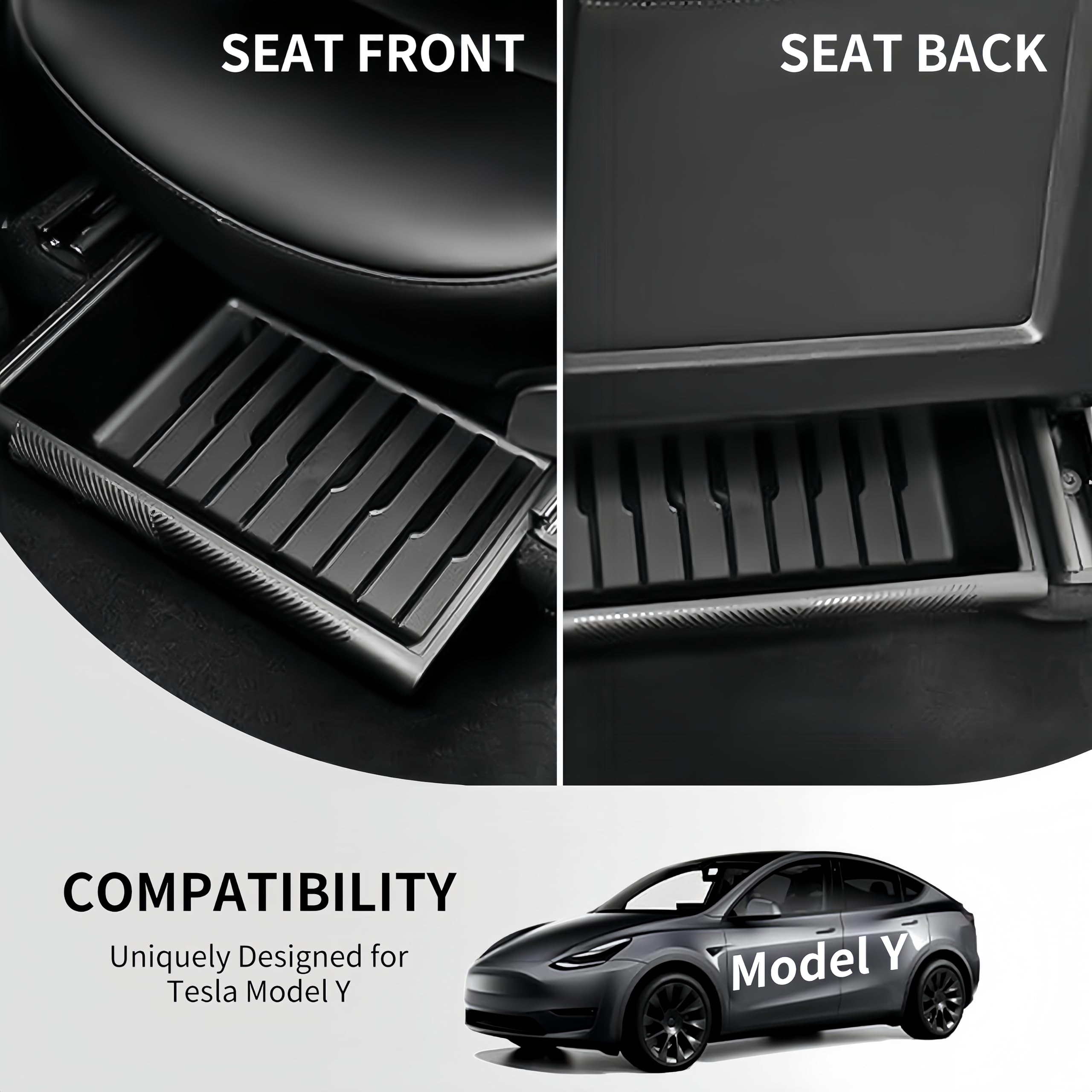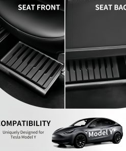 1. Perfectamente Compatible para Tesla Nuestra caja de almacenamiento bajo el asiento para Modelo Y con alta precisión está diseñada específicamente como accesorios para el Modelo Y, que se integra perfectamente con el interior de su Modelo Y, ofreciendo un aspecto más refinado y una experiencia cómoda, compatible con Tesla Model Y (2020-2025) como sus accesorios imprescindibles perfectos para viajar y aventuras! Por favor, tenga en cuenta: esta caja de almacenamiento bajo el asiento del modelo Y no cabrá en el asiento delantero del nuevo Modelo Y.
