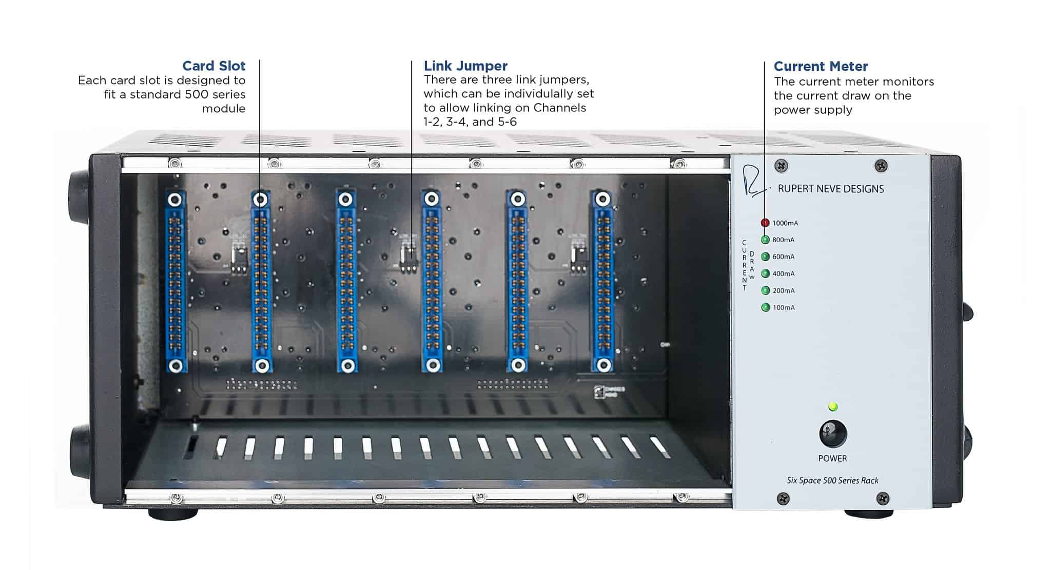 ¿Por qué necesitas el Rupert Neve R6 500 Series Rack? Esta fuente de alimentación robusta proporciona una potencia seria para un chasis de 6 espacios, evitando que las barras de alimentación fallen por una carga mayor de la esperada. Equipado con medición de corriente LED que muestra cuánta energía se está utilizando. Fuente de alimentación de doble blindaje para evitar una inducción magnética significativa. Conectividad masiva con 8 canales de opciones de E/S balanceadas que incluyen DB-25, XLR y TRS. Las conexiones a través de los canales 7-8 pueden usarse para convertir fácilmente su señal de/a los conectores DB-25, TRS y XLR. Construcción sólida de acero listo para la carretera. 2 juegos de pies de goma resistentes para montaje horizontal y vertical, así como un asa plegable. Suministro de alimentación de 48V estable. Funciona a la perfección con cualquier módulo de la serie 500. Si deseas un rendimiento óptimo de tus módulos de la serie 500, el Rupert Neve Designs R6 es el rack que necesitas.