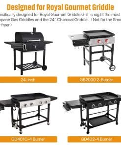 1. Diseñado para Parrillas Royal Gourmet: Específicamente diseñado para la parrilla de parrilla Royal Gourmet, se adapta perfectamente a la mayoría de las parrillas de gas propano y la parrilla de carbón de 24». No es para el ahumador/freidora de aire.