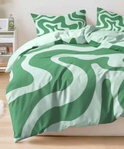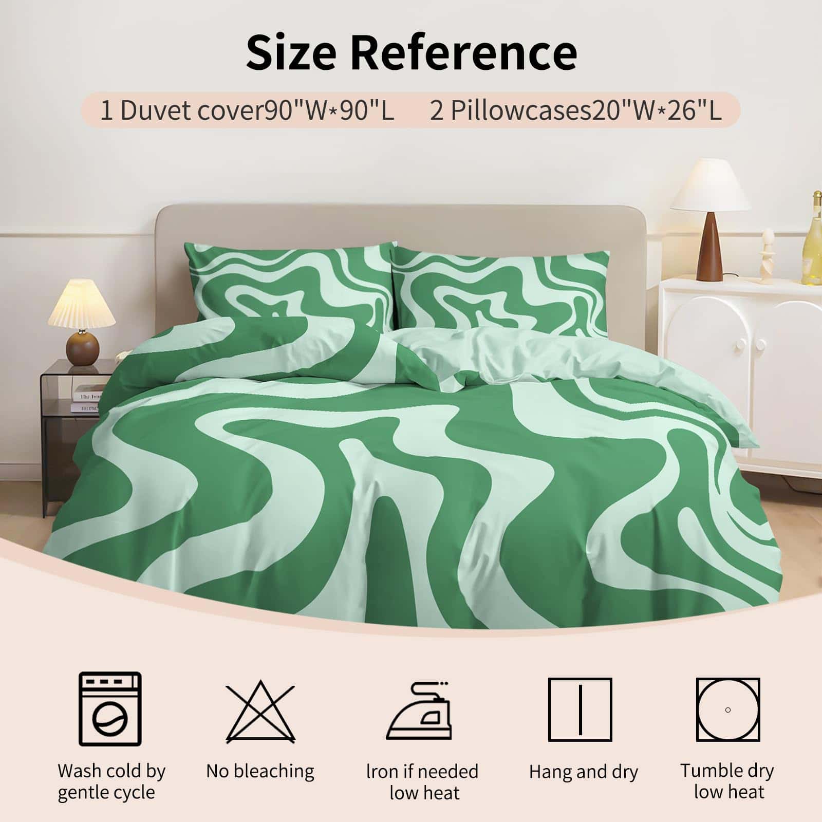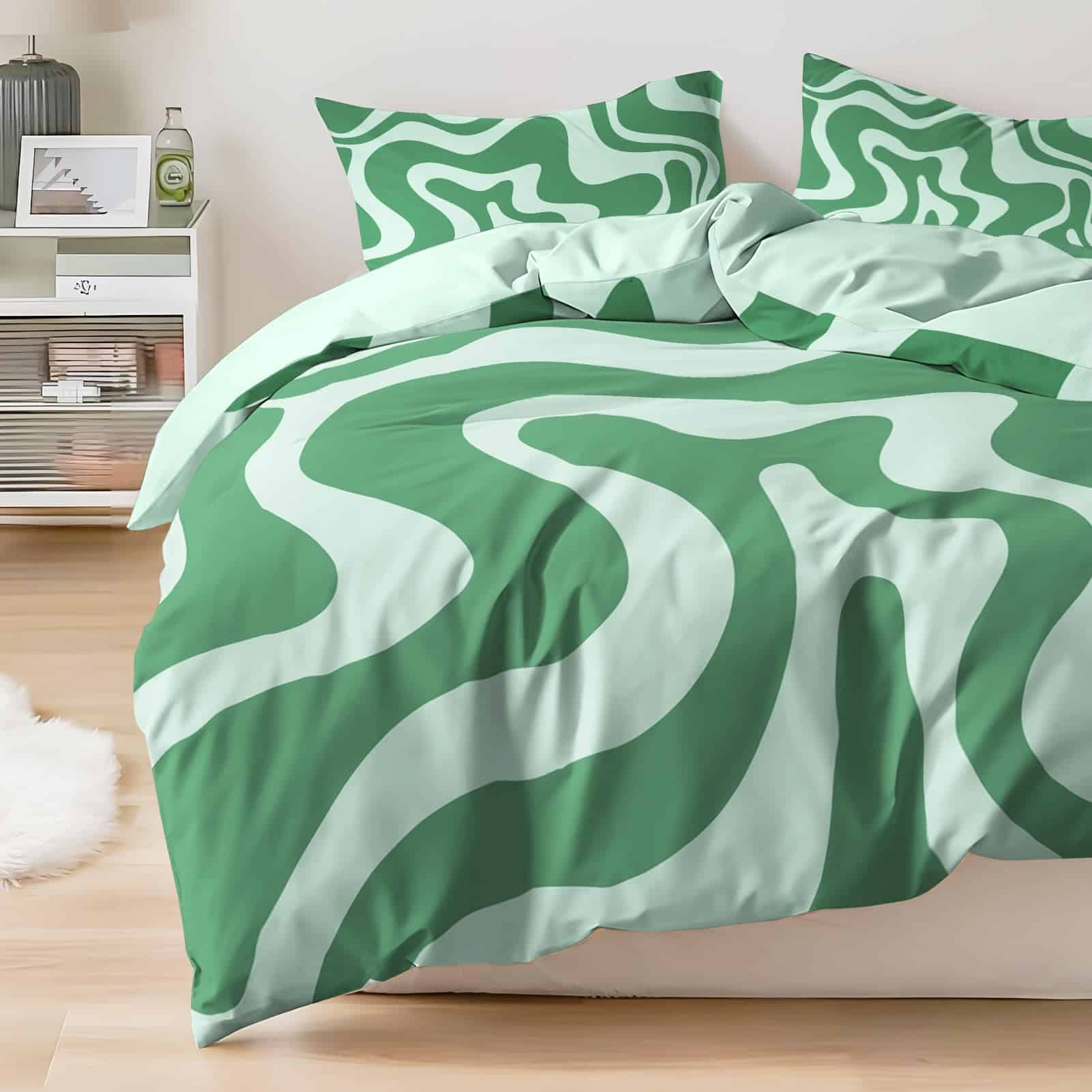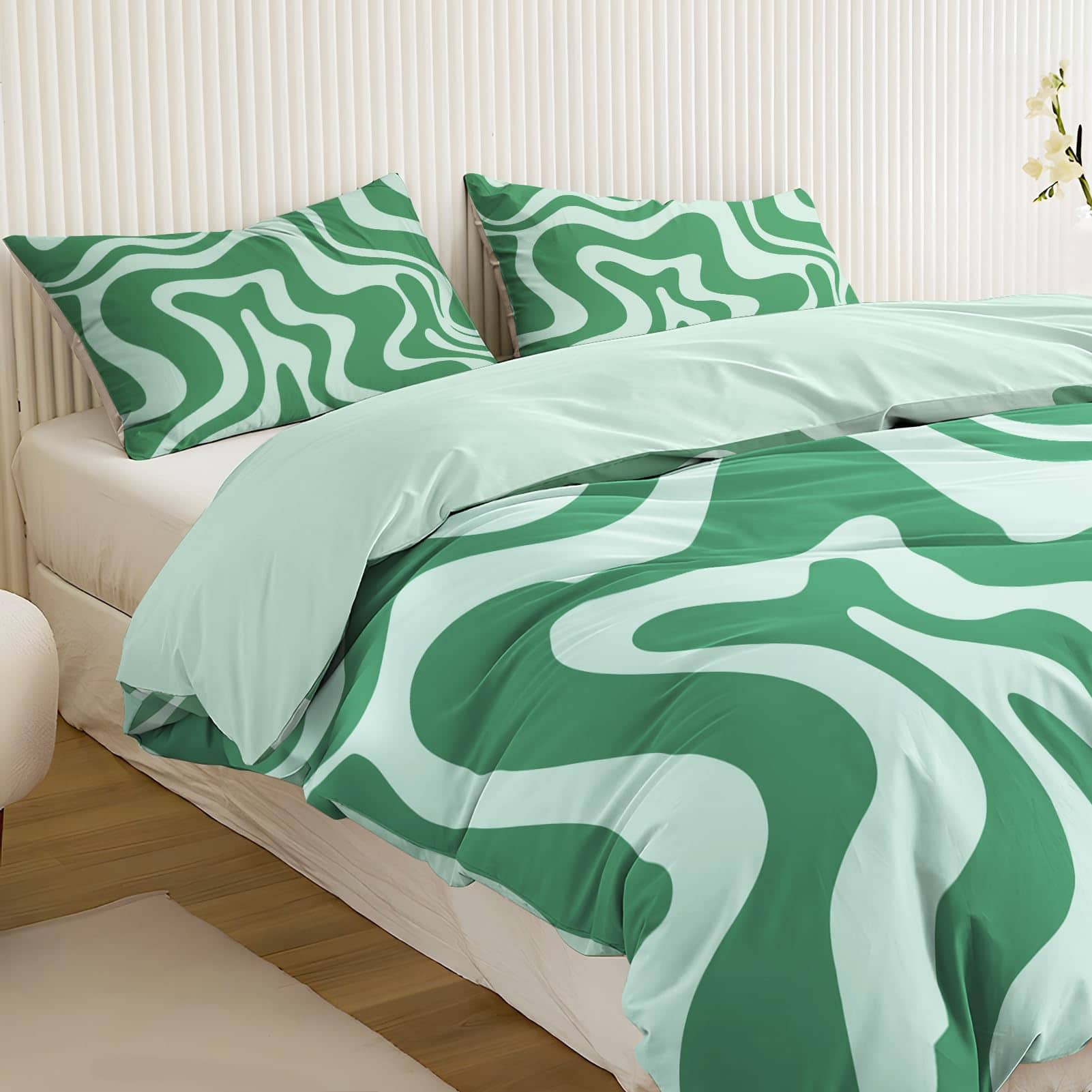 Rvciby Funda de Edredón con Rayas Verdes Tamaño Queen,