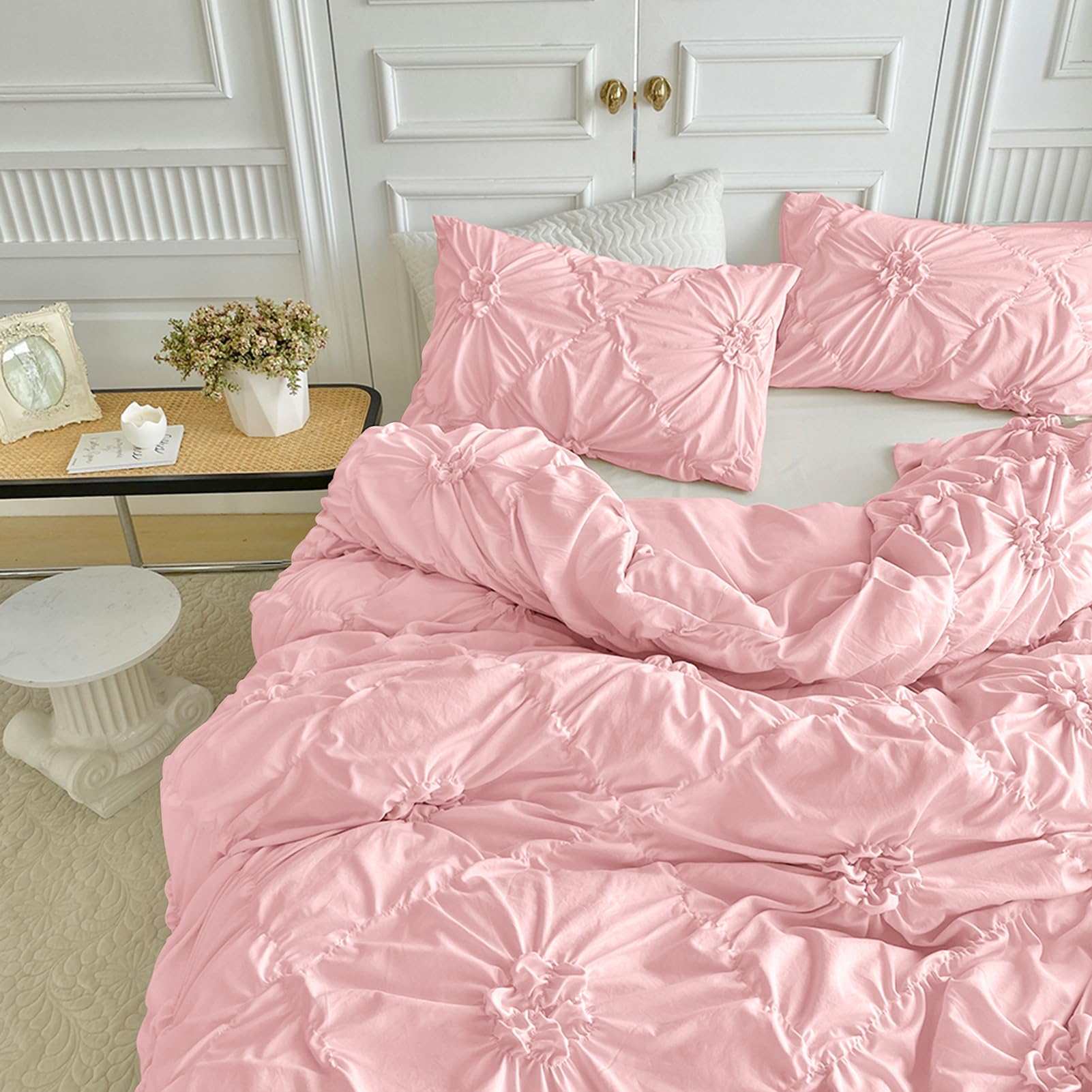 1. DISEÑO DE PATRÓN IMPRESIONANTE ¿Estás cansado de fundas de edredón simples, sin diseño y monótonas? Diseñamos especialmente el Patrón Texturizado de Flores Geométricas para agregar diversión a la habitación, no solo te puedes vestir en San Valentín, cumpleaños, Halloween, Navidad, etc., también puedes decorar la habitación en tiempos ordinarios, convirtiendo la habitación en un lugar relajante y alegre. Al mismo tiempo, también puedes regalarlo a amigos y familiares, estarán muy felices y recibirás sus elogios. 2. CALIDAD EXCEPCIONAL La funda de edredón Rvciby está hecha de material de fibra de poliéster de alta calidad, no contiene productos químicos tóxicos ni dañinos, muy adecuado para personas con piel sensible, pero necesita lavar antes de usar, al mismo tiempo, al lavar también puedes agregar algún suavizante de ropa, para tener una mejor experiencia al dormir. 3. DURABILIDAD La Funda Nórdica Rvciby tiene lazos en las esquinas para mantener el edredón en su lugar y una cremallera que te facilita insertar o quitar tu edredón, haciendo que la funda del edredón sea más conveniente y duradera. El patrón de la funda nórdica utiliza tecnología avanzada, y el color es claro y no se desvanece. La funda de edredón también es extremadamente duradera y no se rasgará fácilmente al tirar y protege contra cualquier encogimiento después del lavado. 4. CUIDADO FÁCIL El juego de funda nórdica es fácil de limpiar. Simplemente lávalo a máquina en frío y seca a baja temperatura, no uses blanqueador. Y lávalo con un color similar. 5. LO QUE OBTENDRÁS Nuestros sets de 3 piezas incluyen: 1 Funda Nórdica King (104″ 90″), 2 fundas de almohada (20″ 36″). Todas las dimensiones se miden manualmente con posiblemente algunas pequeñas desviaciones. Si el tamaño de las 3 piezas y el tamaño de tu almohada y edredón tienen ciertos errores de longitud, no afectarán su uso. (Sin Edredón)