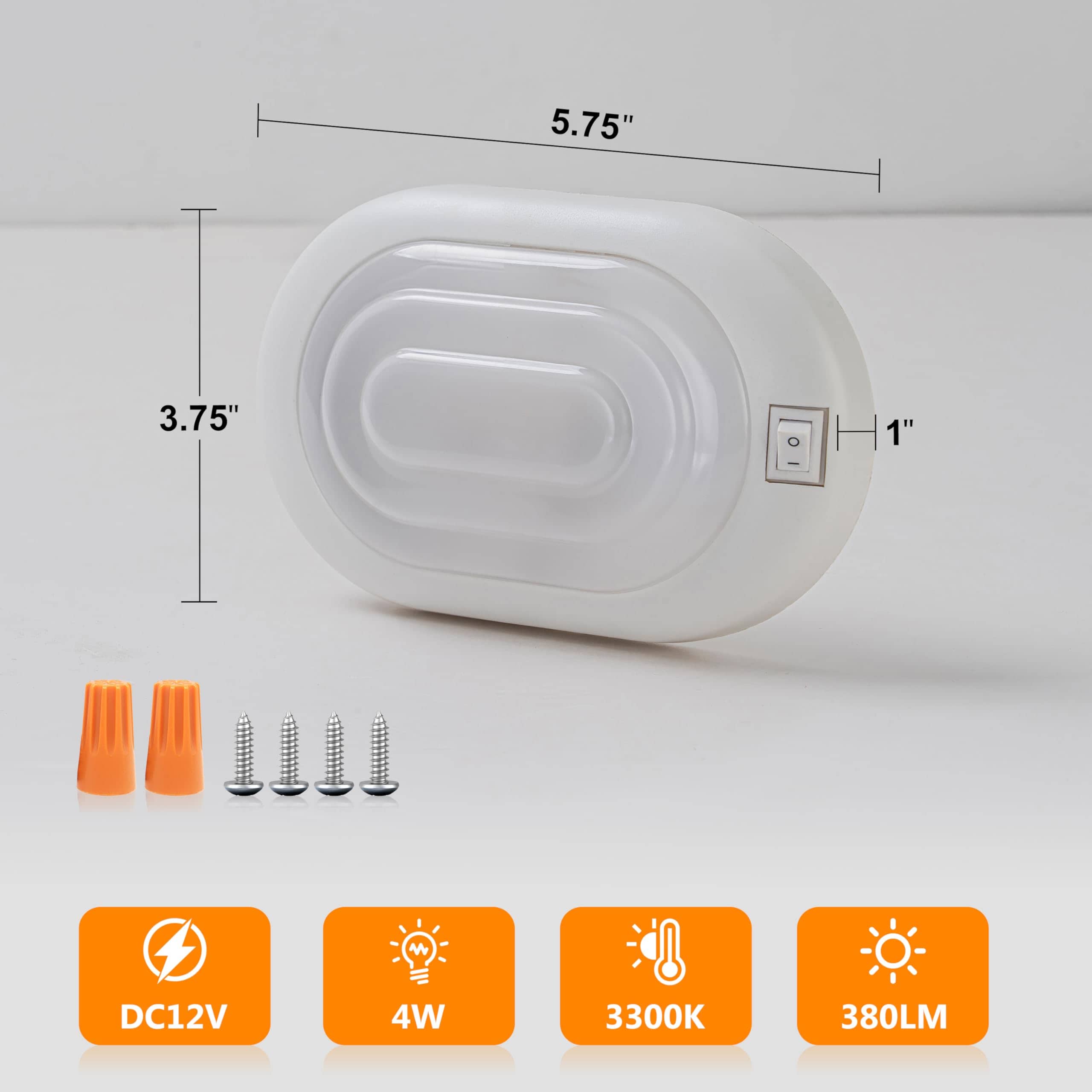 1. Ahorro de Energía y Brillo La luz de techo LED para RV funciona con DC 12V, consume 4W, ahorrando eficazmente el consumo de energía de su vehículo. CRI90/380LM/3300K luz cálida, proporcionando un ambiente de iluminación brillante y cómodo en todos los rincones del automóvil.