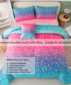 1. Tamaño y medidas: El conjunto de edredones tamaño Queen de glitter incluye 6 piezas en total. Fabricadas con microfibra premium y un relleno esponjoso que proporciona una superior transpirabilidad y suavidad, te mantiene cálido y acogedor en todas las estaciones. 3. Diseño Romántico de Glitter: Este conjunto de edredones de purpurina, con excelentes impresiones 3D que resaltan colores vívidos, muy lindos y adorables, es una integración de arte y visión. 4. Cuidado Fácil: Impresión digital 3D, sin decoloración ni pelusas. Lavar a máquina en frío por separado en ciclo suave. Secar al aire o en secadora a fuego lento. No utilizar blanqueador. 5. Buena Elección como Regalo: Este lindo y encantador conjunto de edredones con diseño de glitter, lleno de amor y romance, adecuado para todas las estaciones. Buena elección como regalo de cumpleaños o regalo especial de vacaciones para niños, niñas, adolescentes, mujeres y tus buenas amigas.
