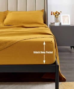 S VICTORY SYMBOL Sábana Ajustable de Lino -Amarillo Jengibre