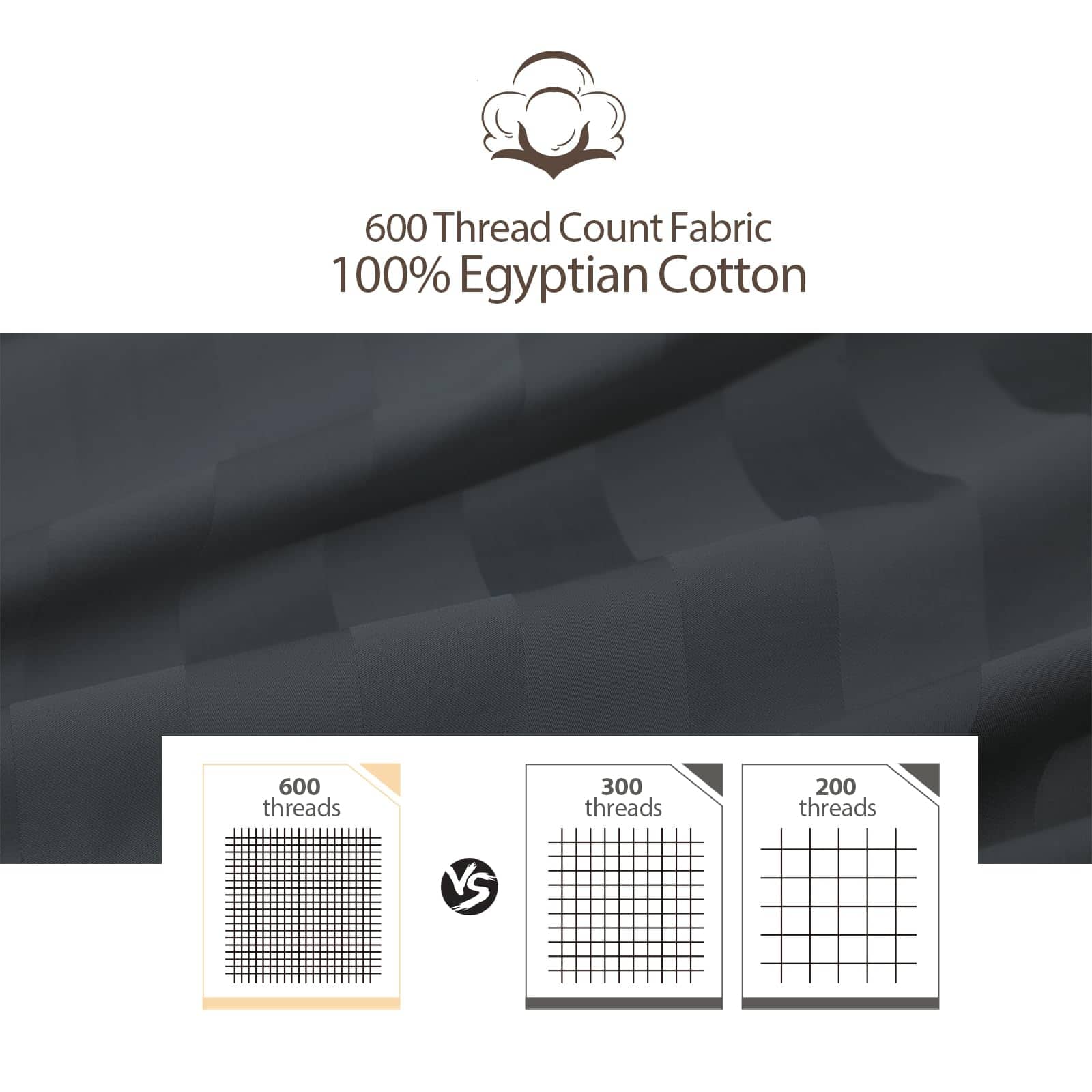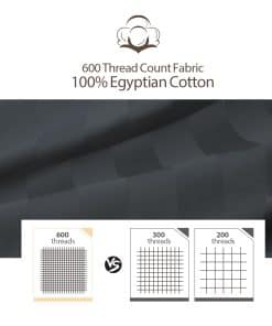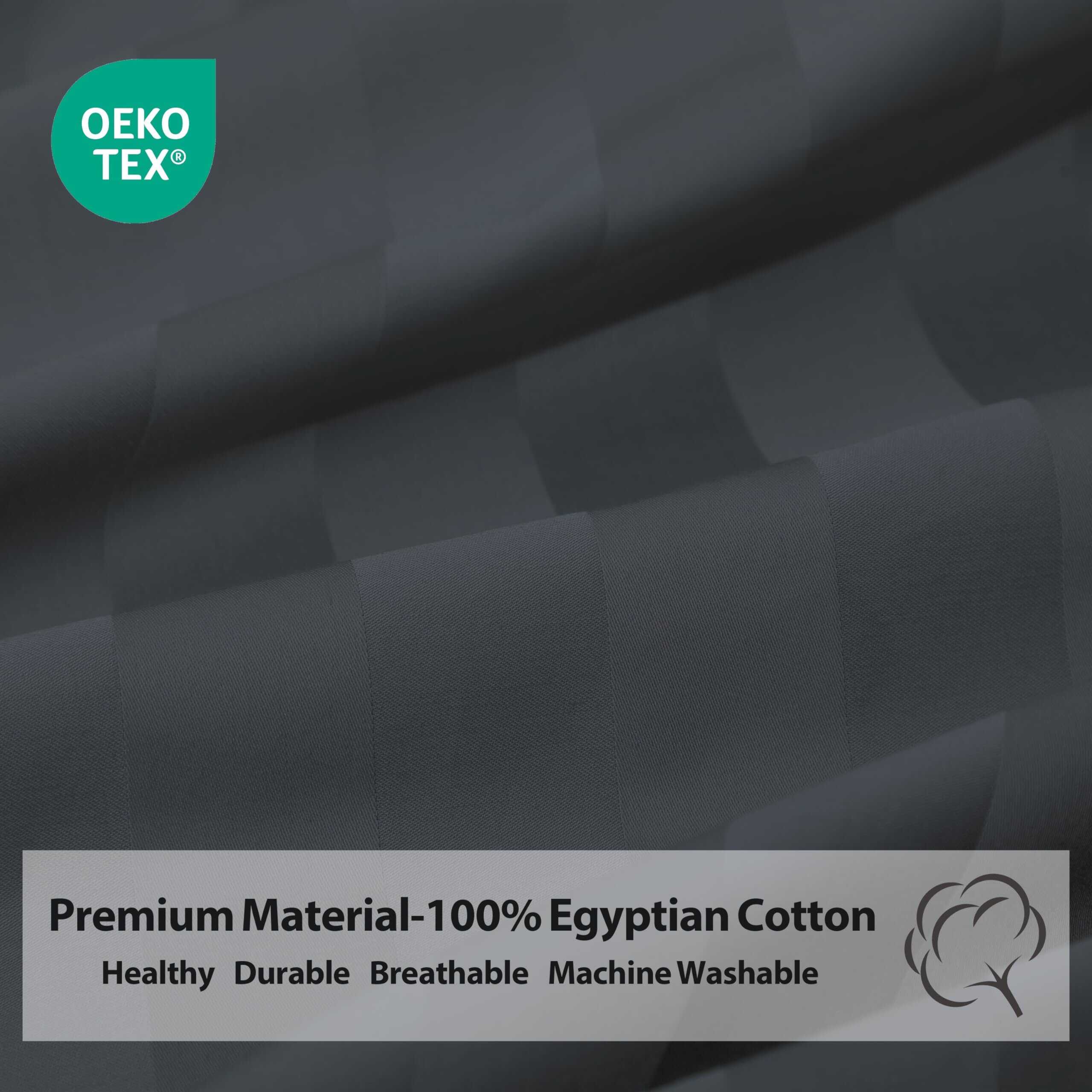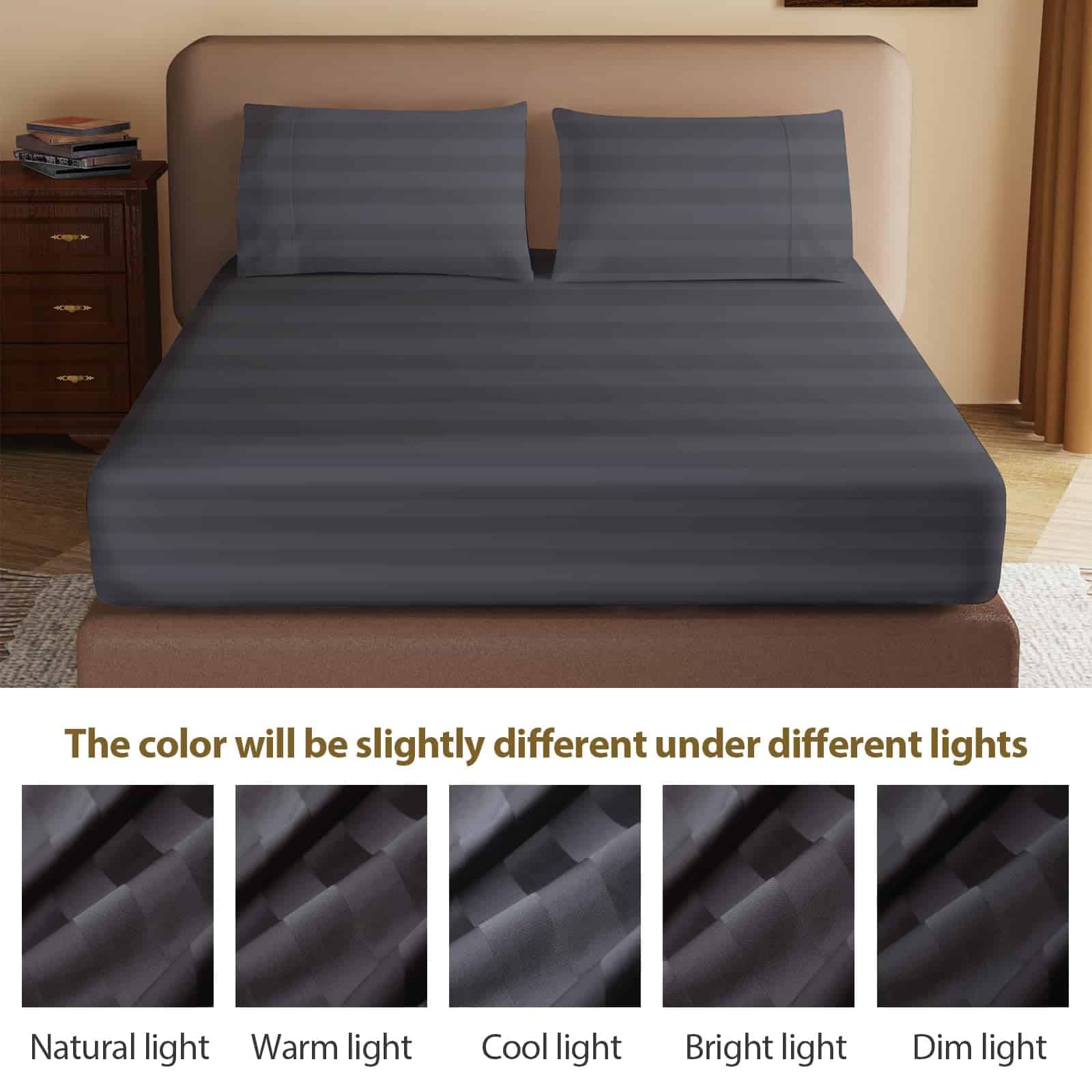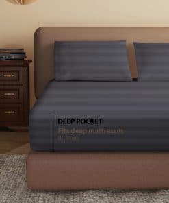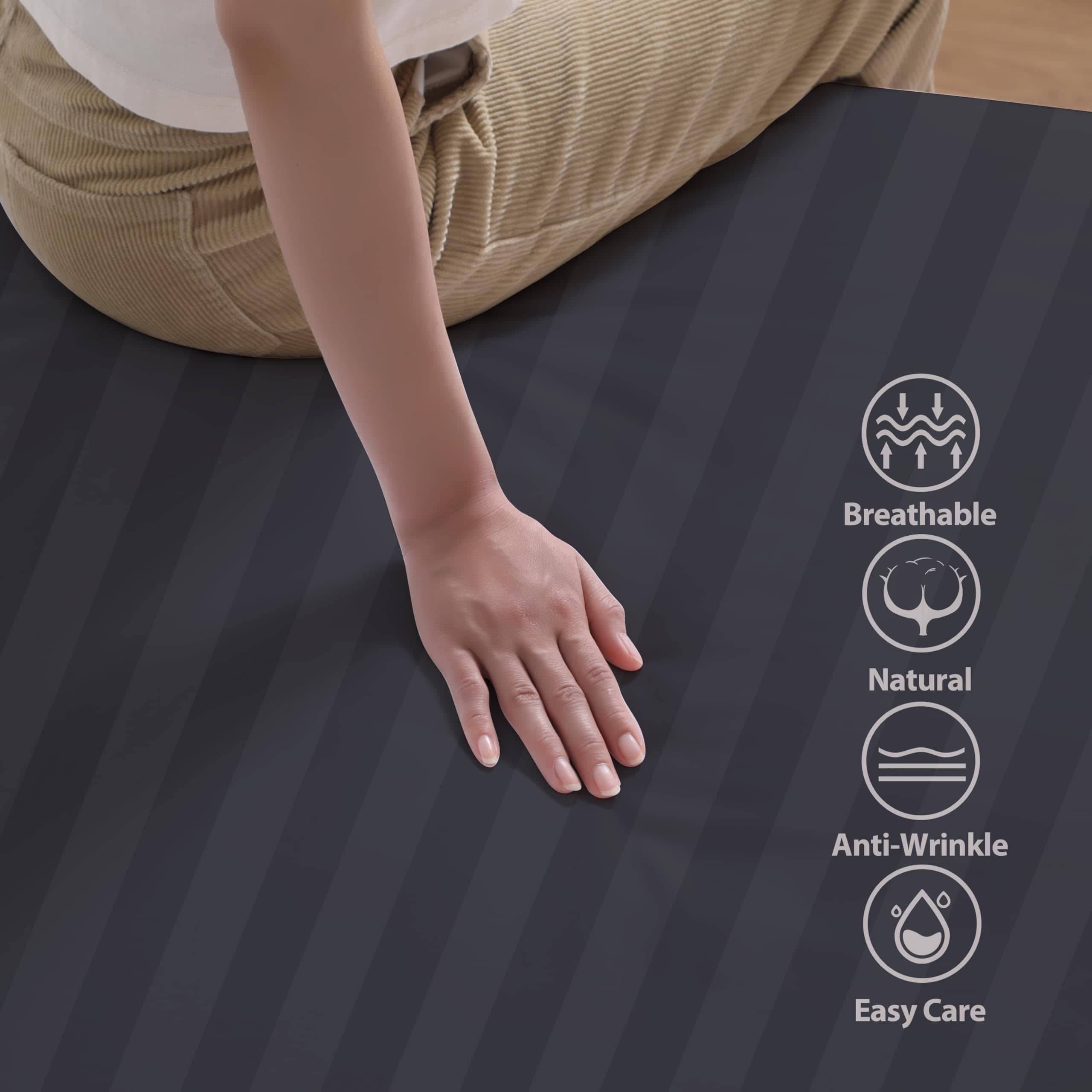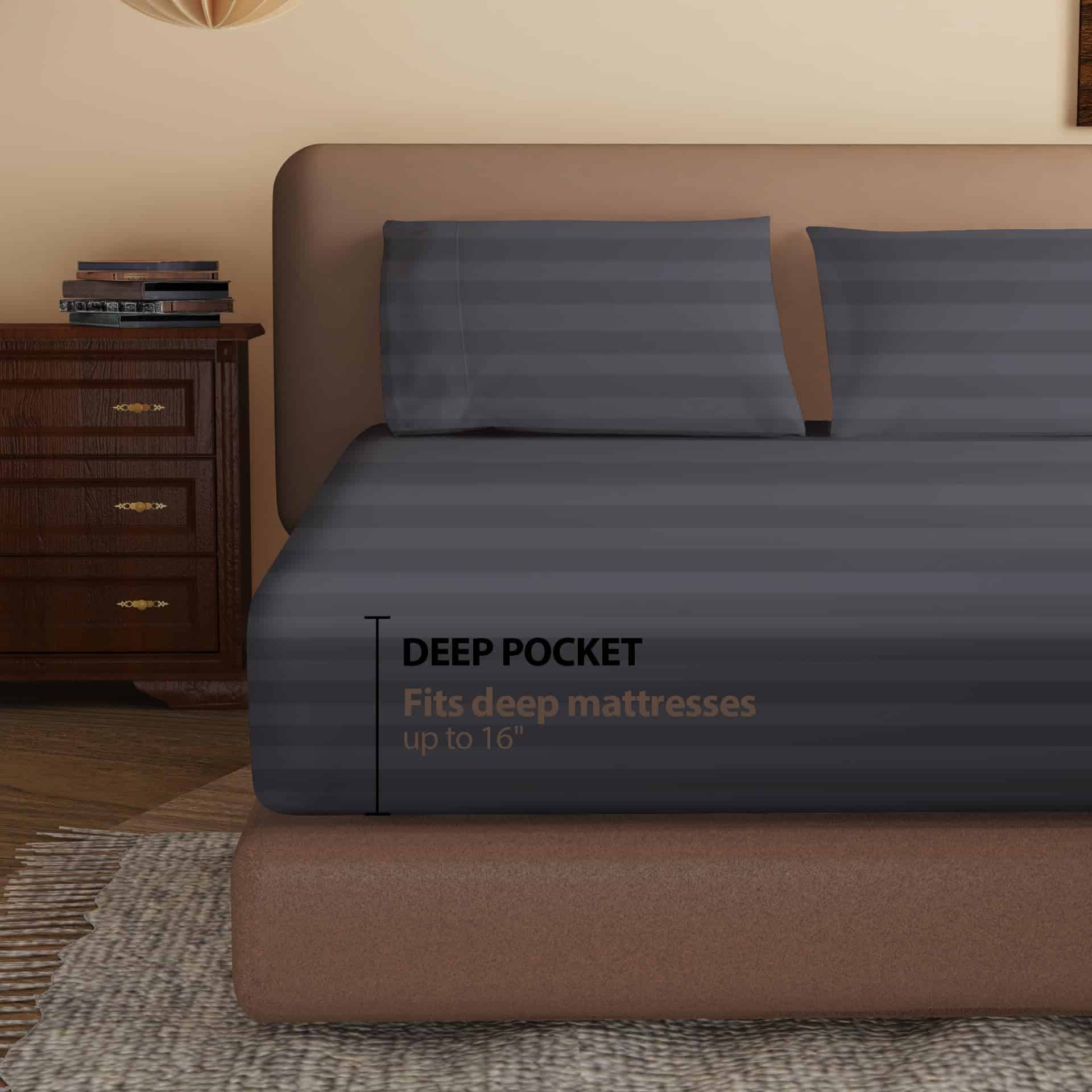Sábana Ajustable 100% Algodón Egipcio -Gris Oscuro a Rayas