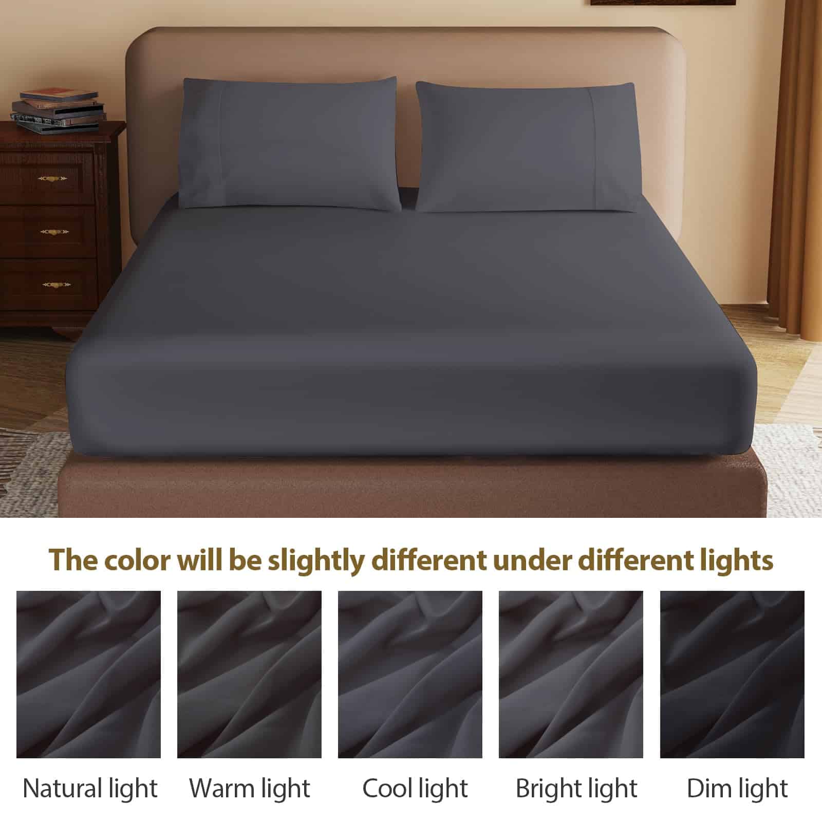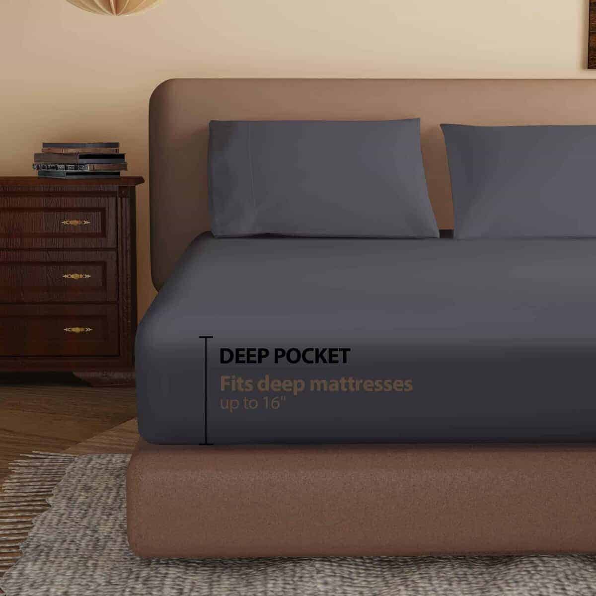 Sábana Ajustable 100% Algodón Egipcio -Gris Oscuro