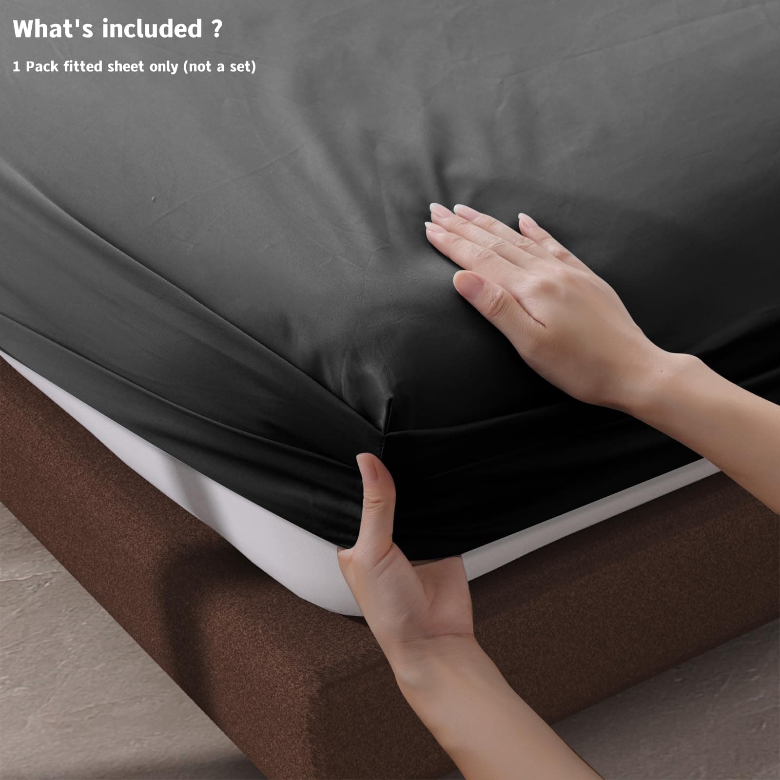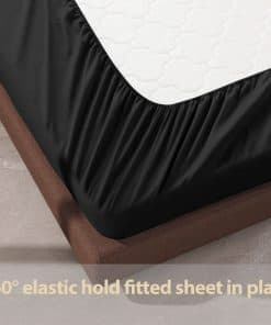 Sábana Ajustable de Algodón Egipcio al 100% en Tamaño California King – Nuestra sábana ajustable de 600 hilos está hecha con 100% de fibra de algodón de larga duración y un hermoso tejido satinado. Esto hace que esta sábana ajustable negra sea más duradera, suave y transpirable. Mientras tanto, las sábanas satinadas le ofrecen una sensación sedosa y lo mantienen relajado y acogedor. Acuéstese en esta sábana ajustable de 600 hilos y disfrute de la experiencia de sueño perfecta con su familia. Usted y su familia merecen lo mejor. Esta Sábana Ajustable de Tamaño California King de 1 PIEZA es sólo la sábana ajustable, NO es un JUEGO – La sábana ajustable de tamaño California King mide 72″ de ancho x 84″ de largo + 16″ de bolsillo profundo e incluye una etiqueta inteligente en el extremo para indicar el lado ancho de la sábana ajustable para facilitar su uso. Actualice su lugar de residencia con esta sábana ajustable de lujo ahora, esta sábana cómoda y amigable para la piel es justo lo que necesita para dormir relajadamente. El BOLSILLO PROFUNDO PARA UN AJUSTE PERFECTO de esta sábana ajustable de tamaño California King de 16″ de bolsillo profundo tiene elástico en todo el contorno para tirar de los bordes y hacer que se ajuste perfectamente en colchones de espuma viscoelástica altos y bajos, o colchones de almohadas. ¡No más preocupaciones por que sus sábanas se salgan en medio de la noche! También se mantienen en su lugar mejor que las sábanas regulares, por lo que puede dormir tranquilamente sin preocuparse por que se amontonen. CERTIFICACIÓN ESTÁNDAR 100 POR OEKO-TEX – Desde la tela hasta el hilo y los accesorios, nuestras sábanas ajustables han sido probadas científicamente. Prometemos que estas sábanas ajustables son una elección más segura para su salud y el material preferido para niños y personas con piel sensible. Y no es necesario preocuparse por problemas de formación de pelusa, encogimiento, arrugas y decoloración. Por favor, consulte la información de cuidado a continuación.