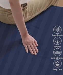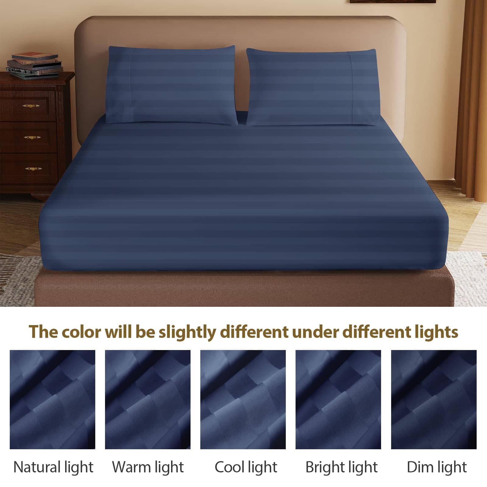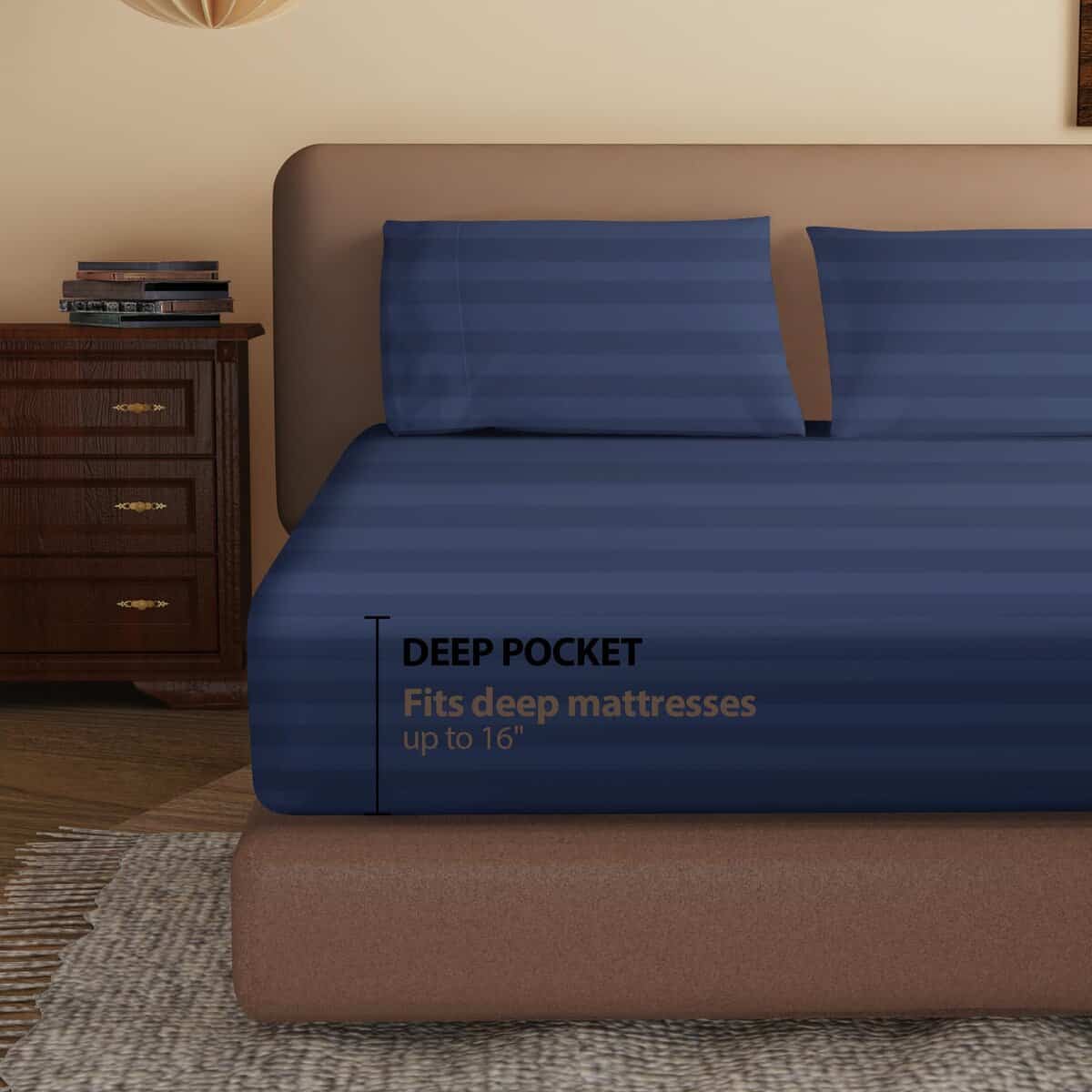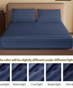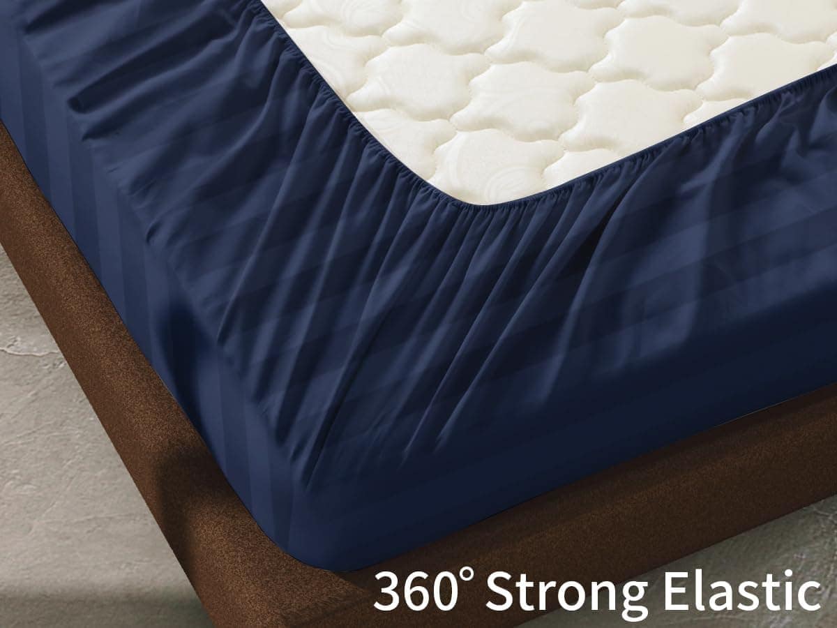 La sábana ajustable tamaño California King incluye 1 pieza (NO ES UN JUEGO) y tiene un bolsillo profundo de 16″ para un ajuste perfecto en colchones de espuma viscoelástica de perfil alto o bajo. El elástico alrededor de la sábana ajustable asegura que se ajuste perfectamente y se mantenga en su lugar durante la noche, lo que le permite dormir tranquilamente sin preocuparse por que las sábanas se deslicen. La sábana tienen una etiqueta inteligente en el pie para indicar el lado ancho de la sábana ajustable para facilitar su uso.